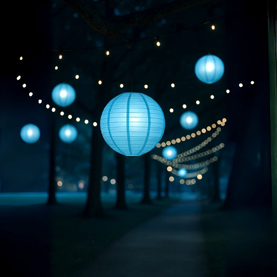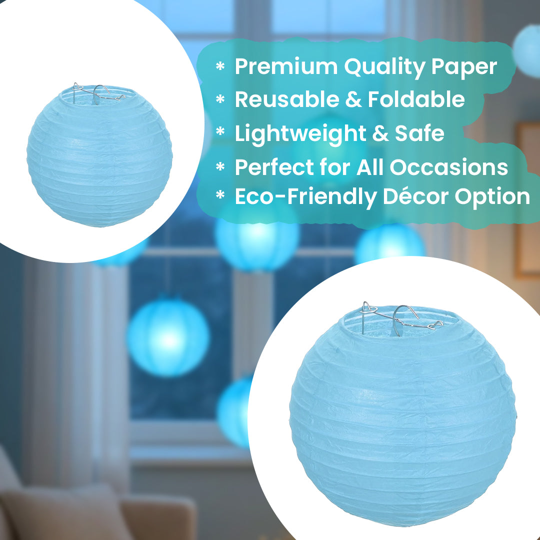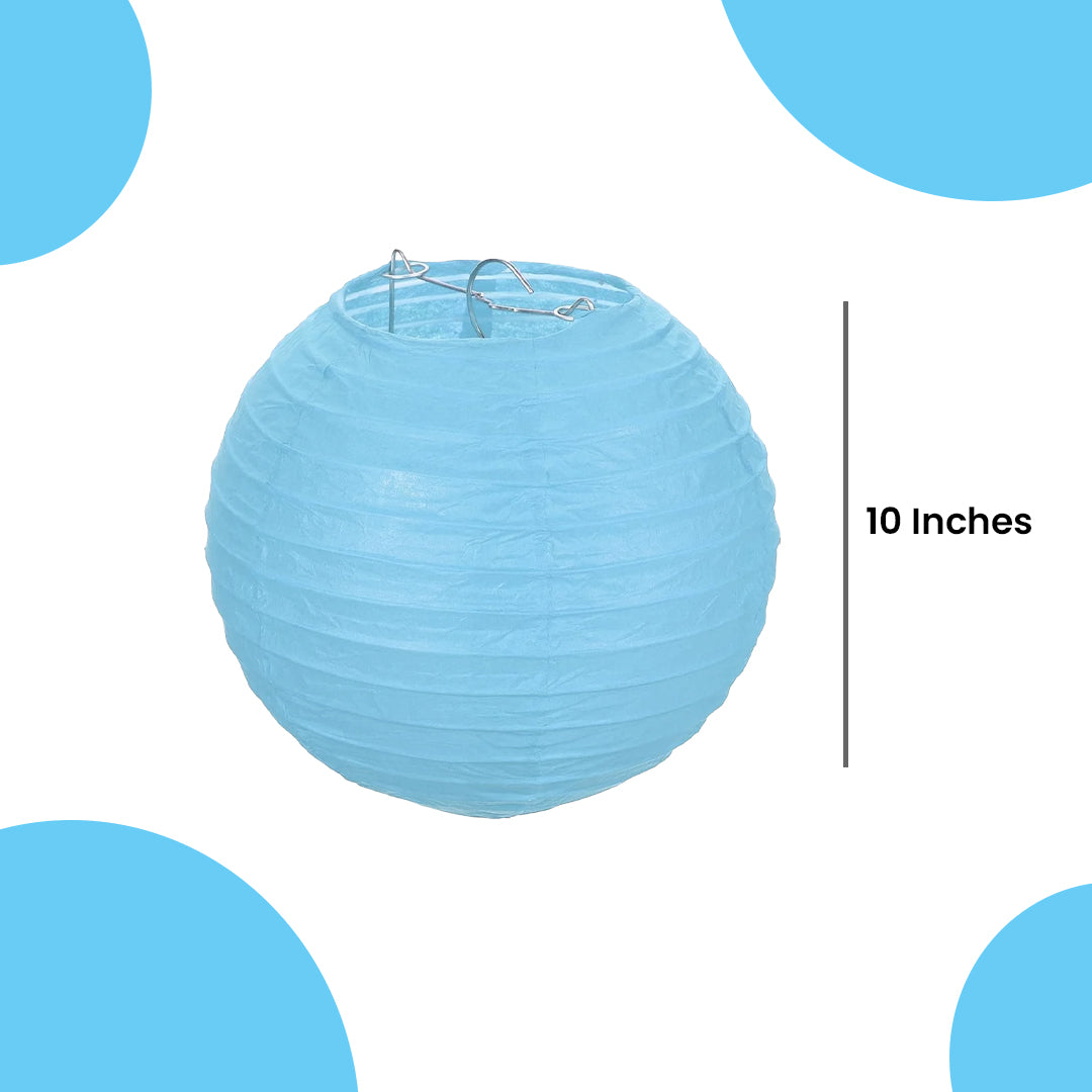 Vibrant Blue Elegant Lantern: Enhance your celebrations with this pack of 10 stylish blue paper lanterns. Their vibrant color and spherical design add a charming touch to birthdays, weddings, baby showers, or festive events, making your space instantly more joyful and visually appealing.
