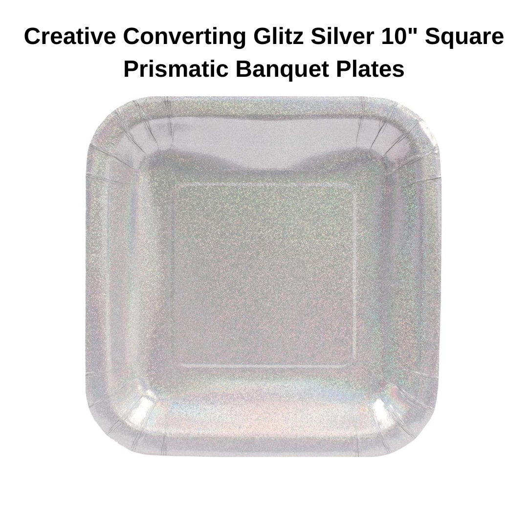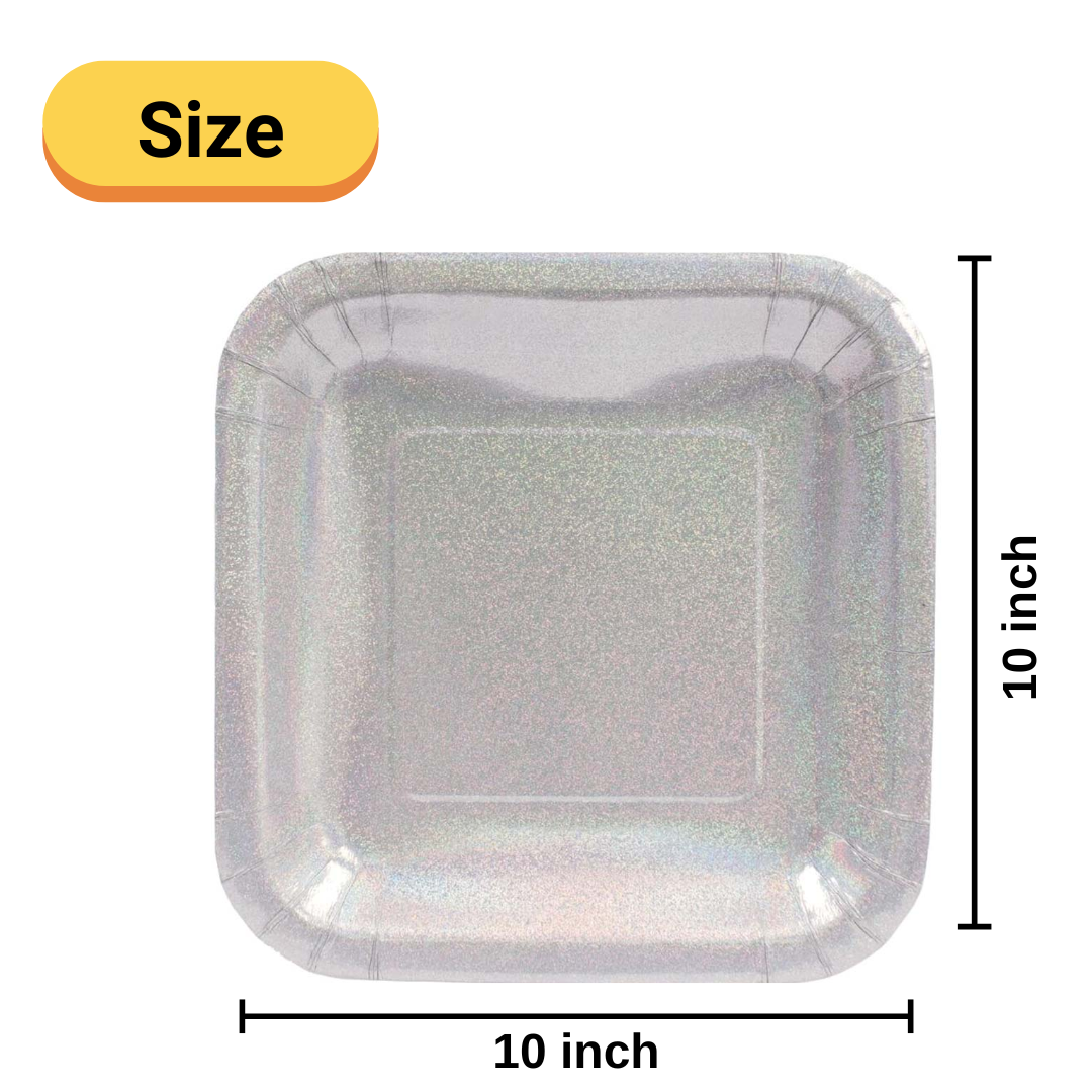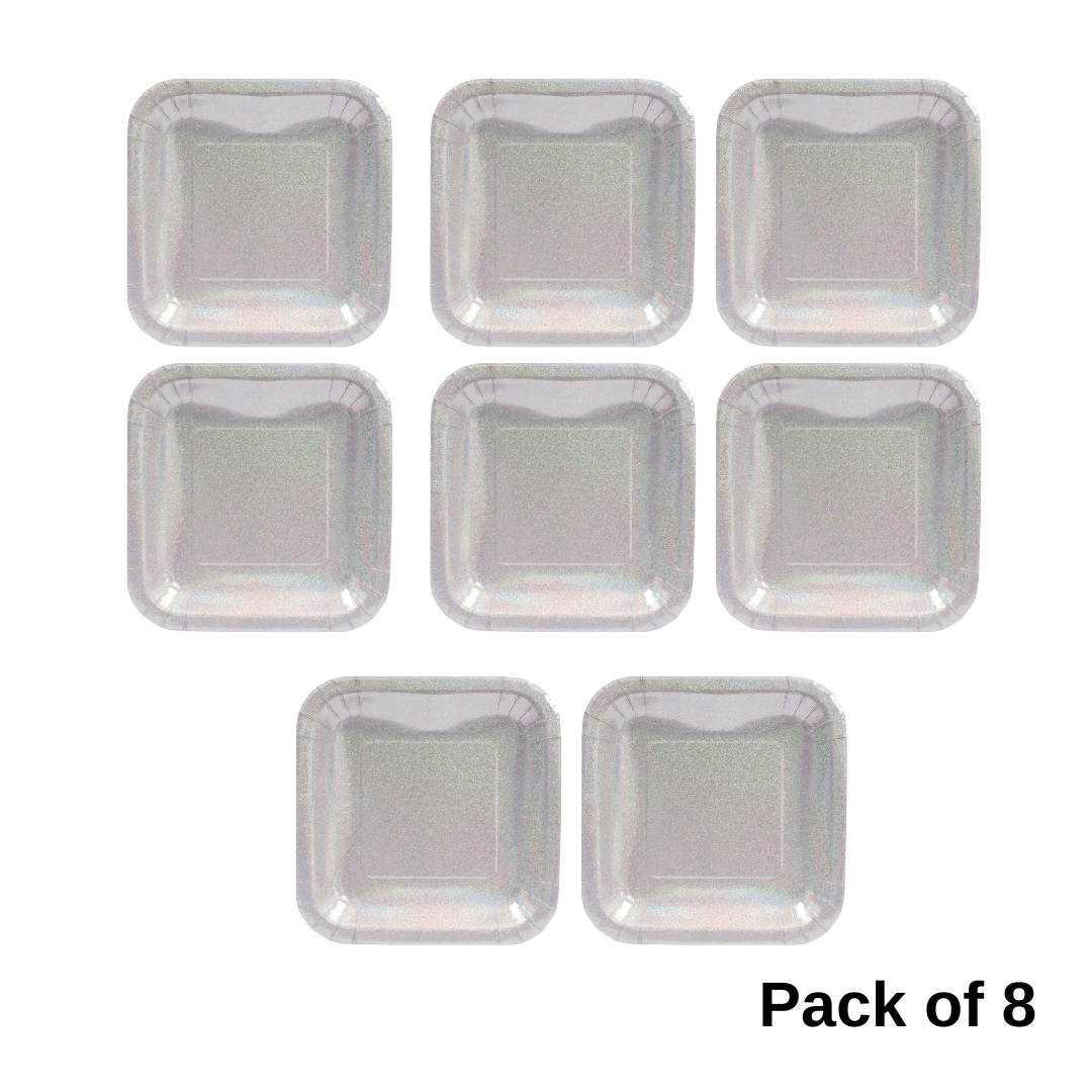 Silver Square Prismatic Party Plates - 10 inches 8PC