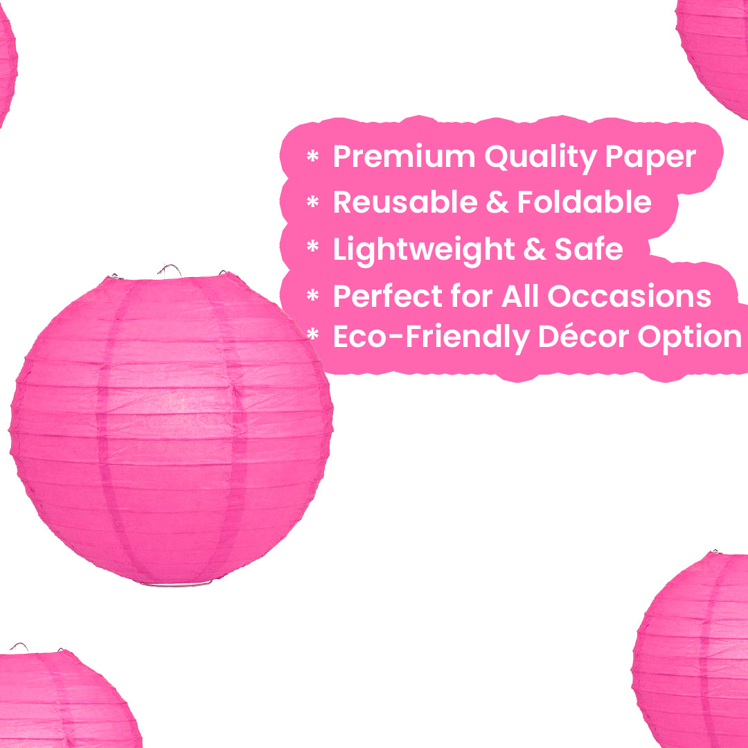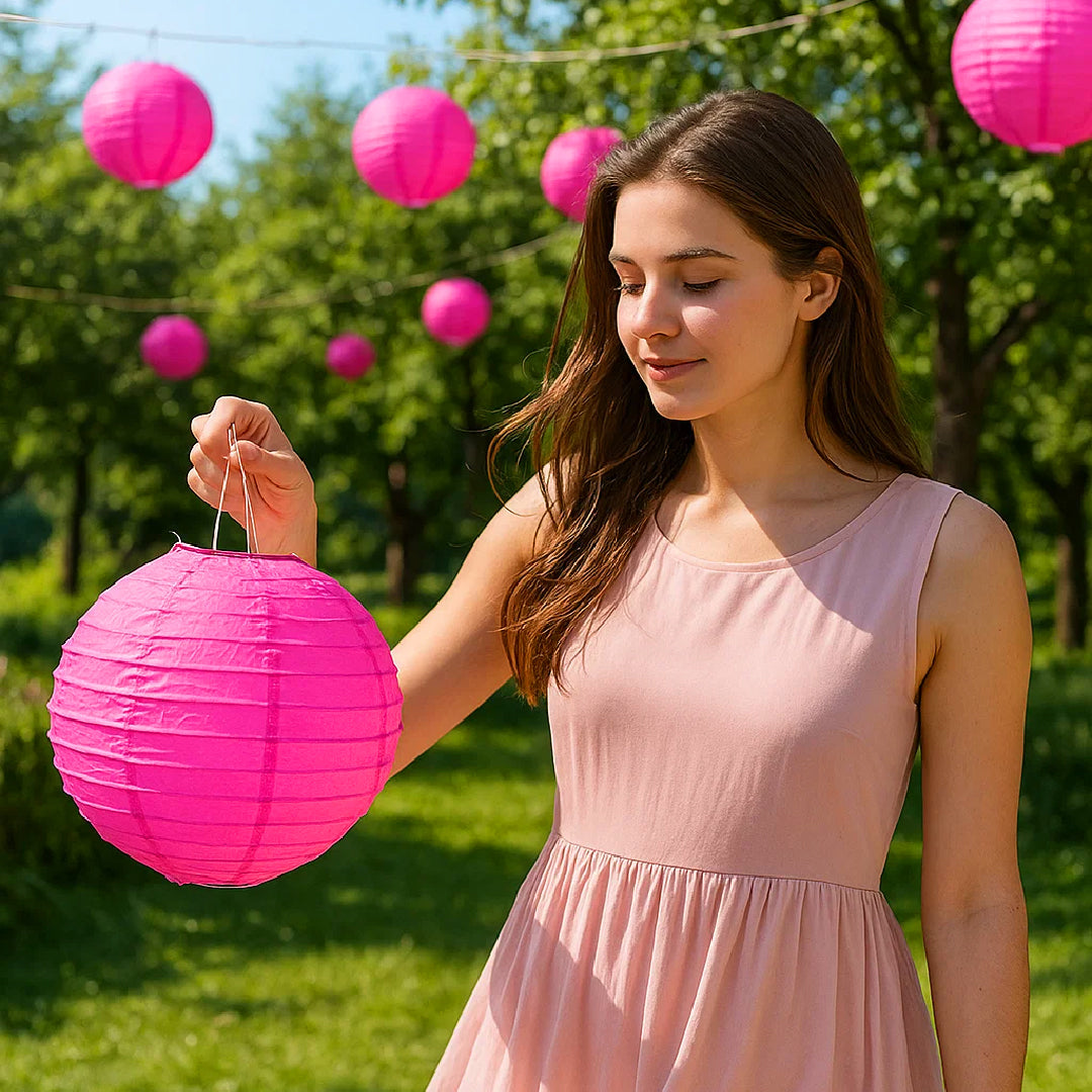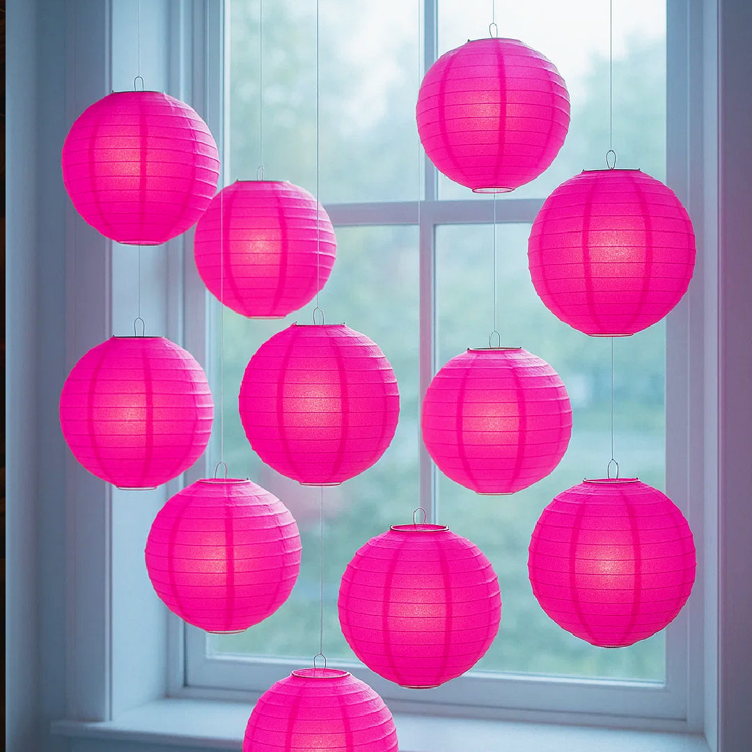 Vibrant Hot Pink Décor Element: Adds a pop of color to any celebration with this 12-inch hot pink paper lantern. Its bold hue creates a cheerful atmosphere, making it perfect for birthdays, bridal showers, baby showers, or festive décor at home or party venues.