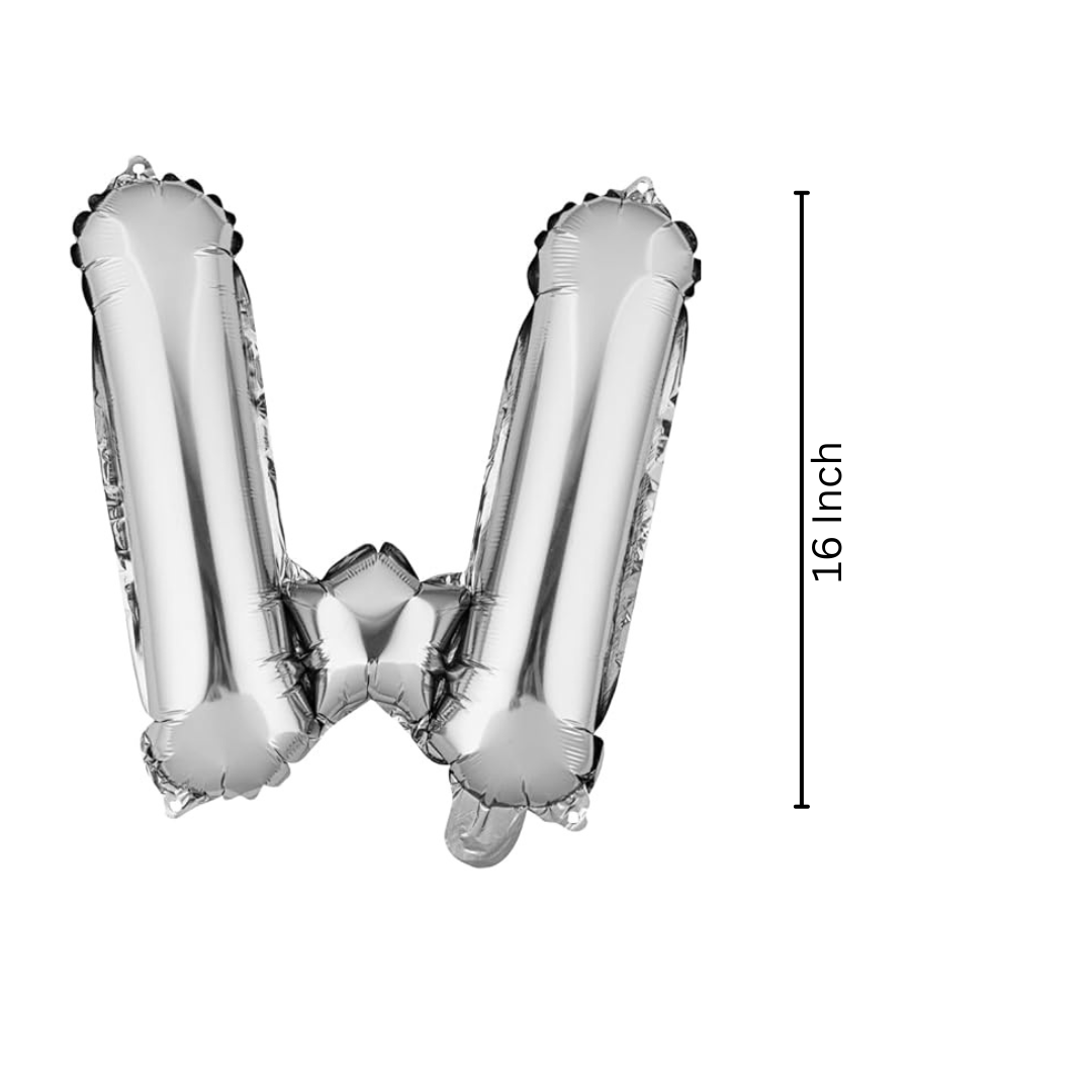 Letter W Silver Foil Balloon - Air Filled - 16 inches - 1PC