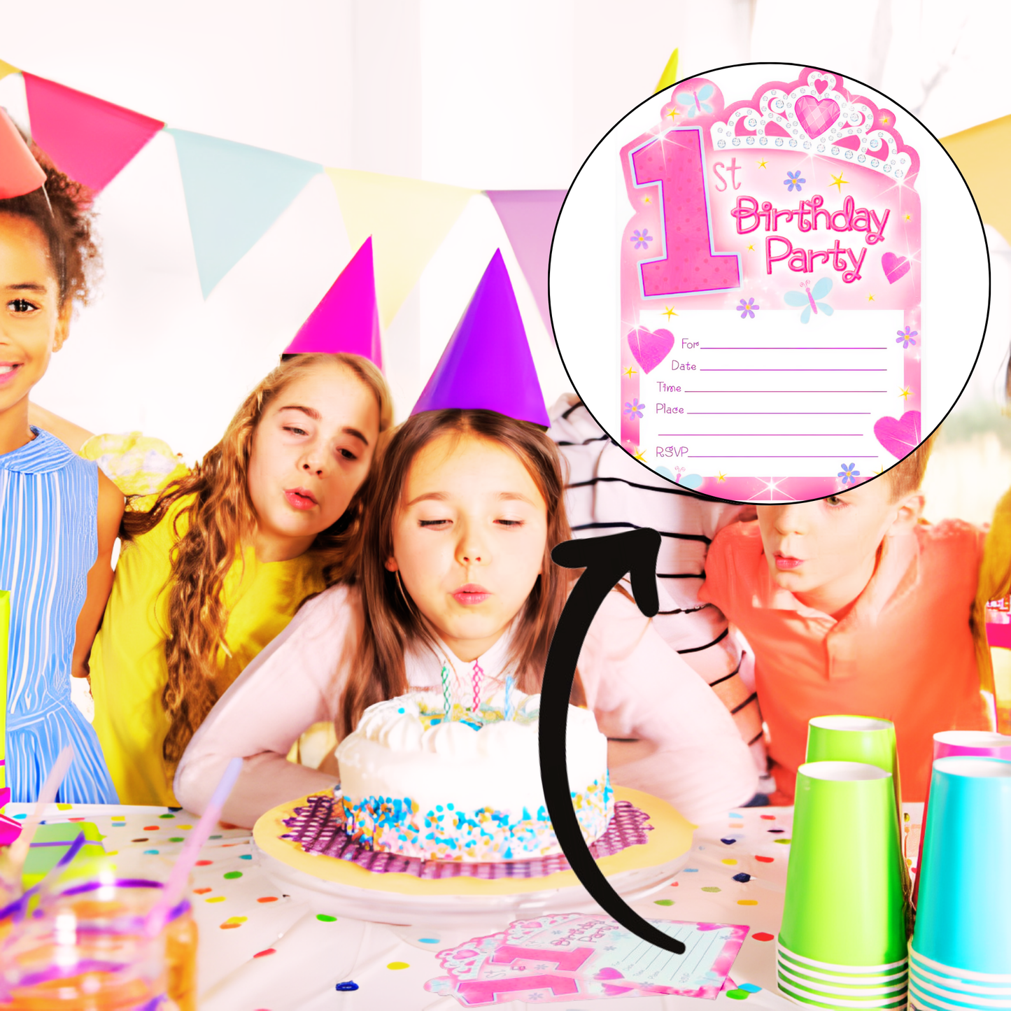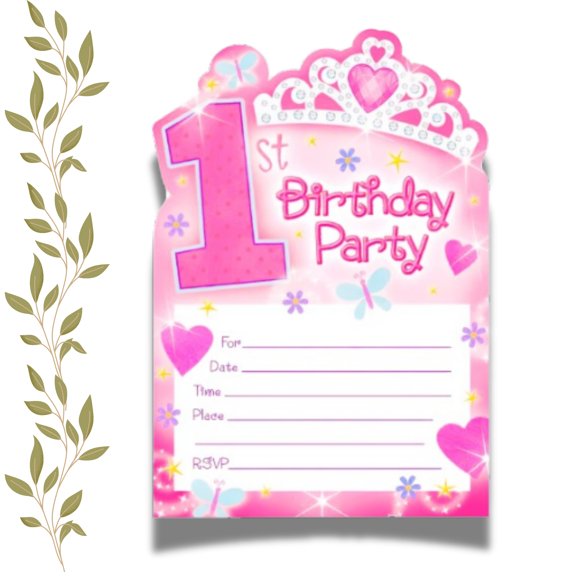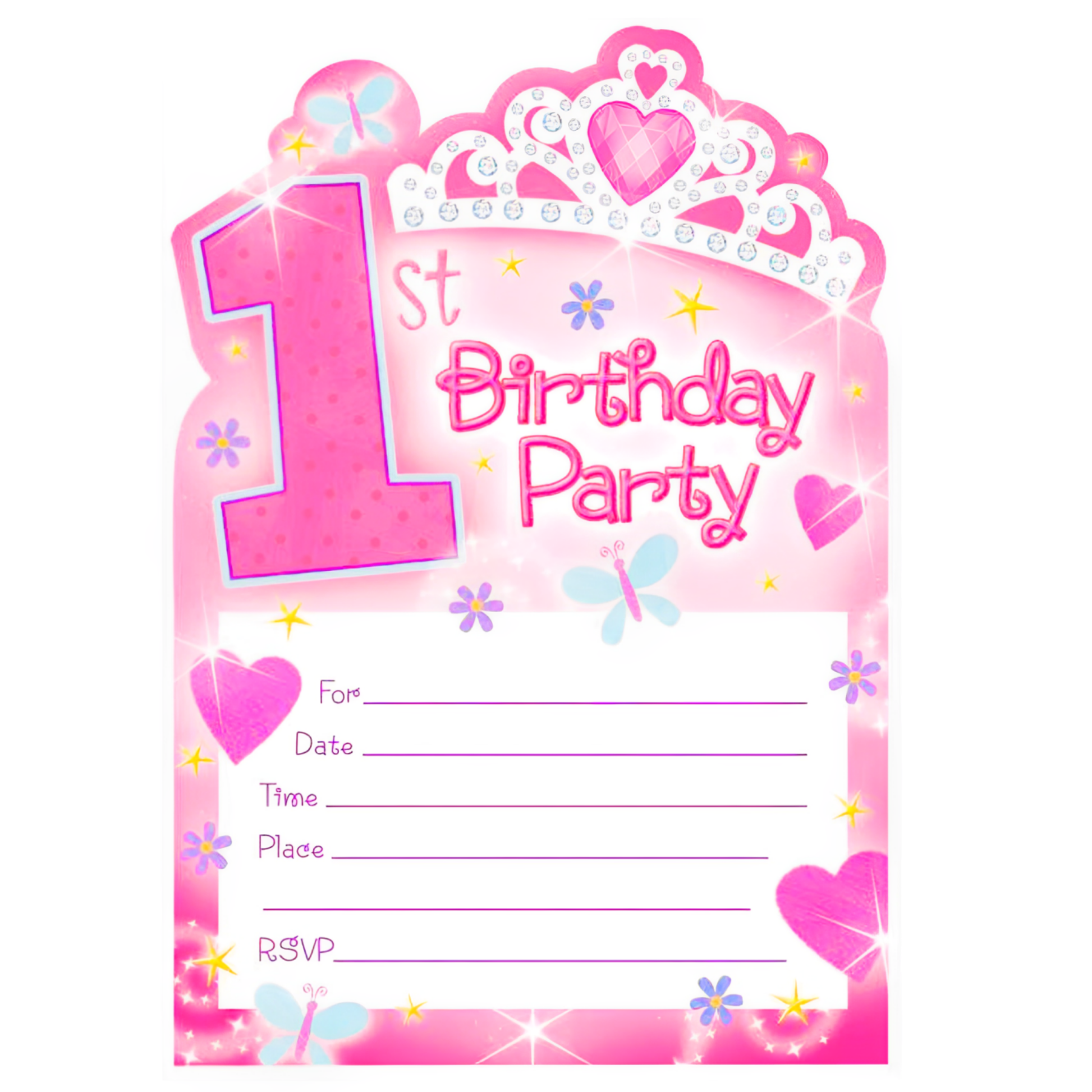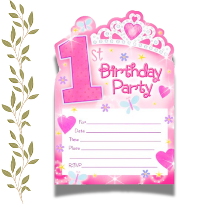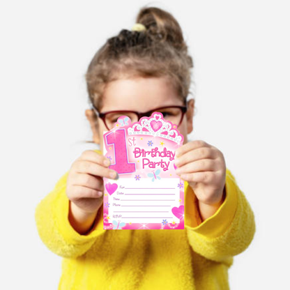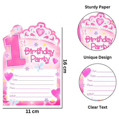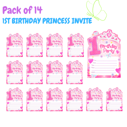 Happy 1st Birthday Princess Pink Invites - 14PC