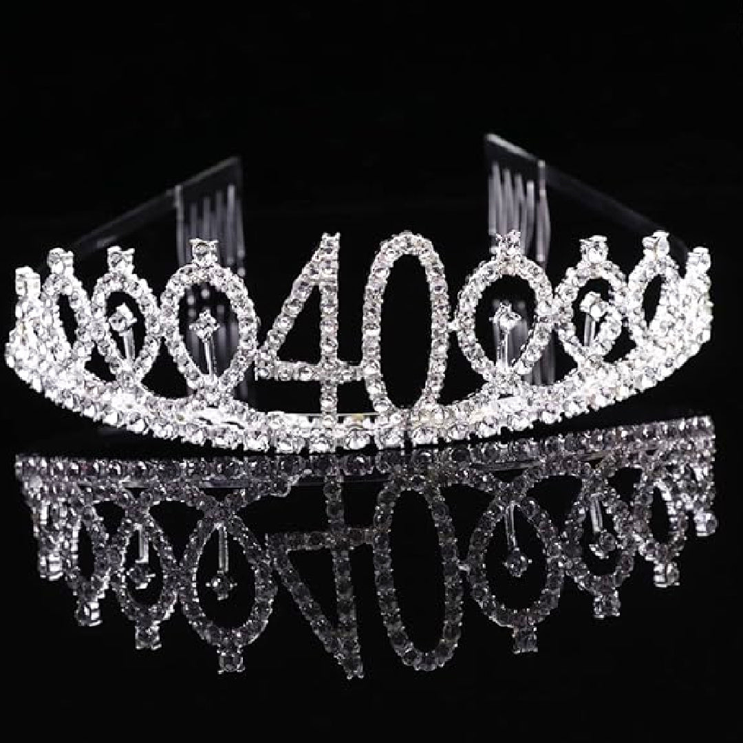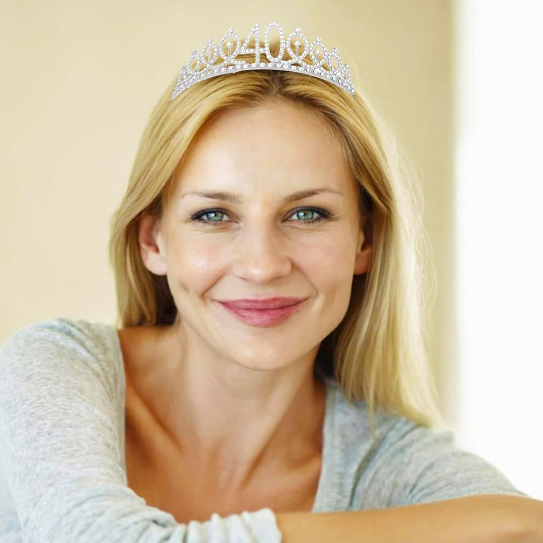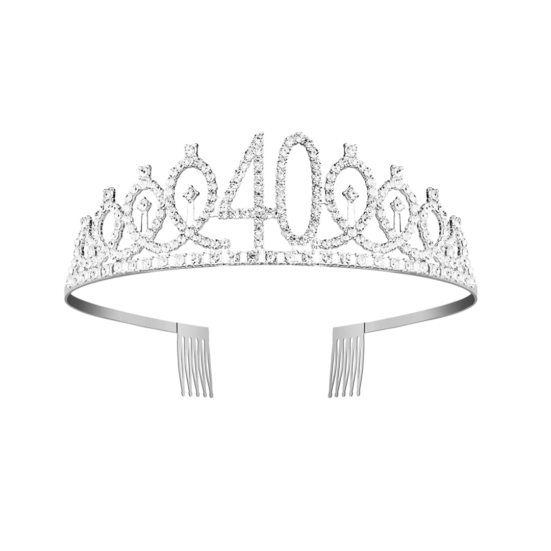 Shimmering Silver Finish: Crafted from silver-tone metal, the tiara offers a sleek and sophisticated look, making it a standout accessory for any 40th birthday celebration.