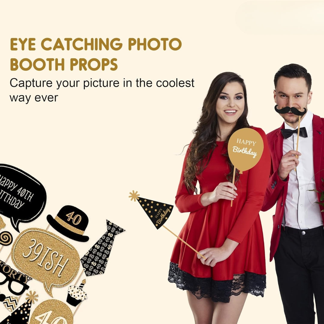 Celebrate a Milestone in Style: This 20-piece set is the perfect way to add fun and flair to any 40th birthday party, featuring props with witty phrases to make the guest of honor and friends feel special.