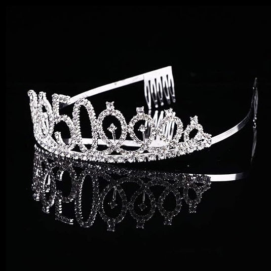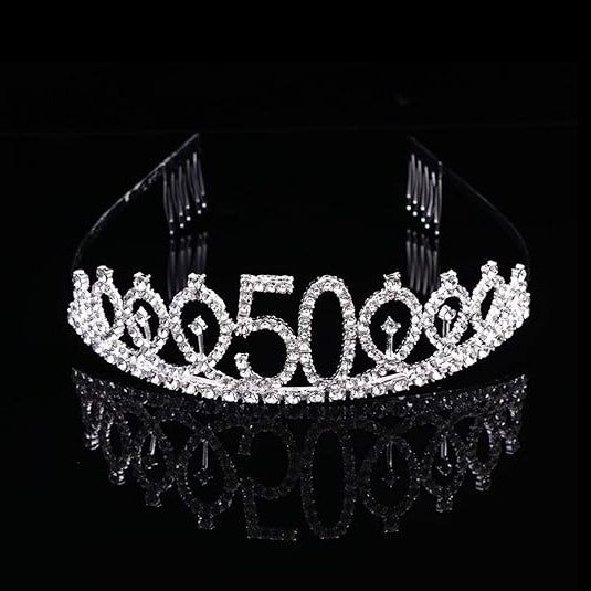 Happy 50th Birthday Silver Crown with Rhinestone - 1PC