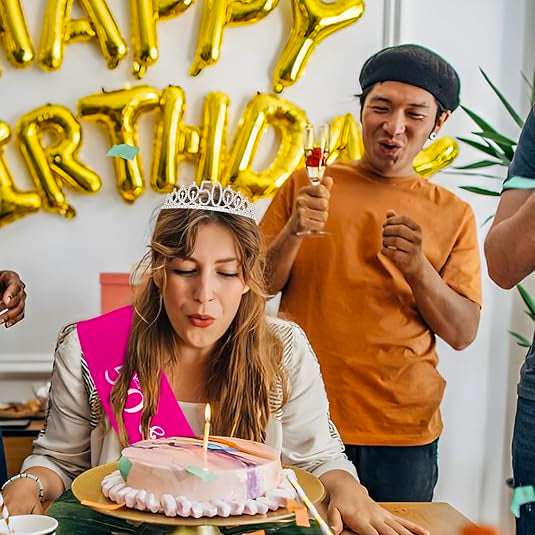 Gleaming Silver-Tone Finish: Crafted from high-quality silver-colored metal, the tiara offers a polished and sophisticated look that complements any birthday outfit.