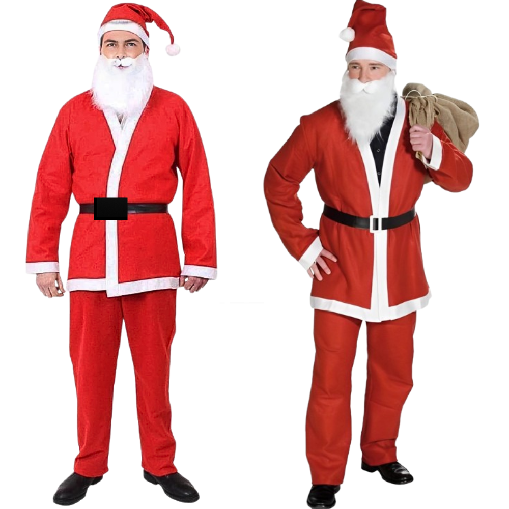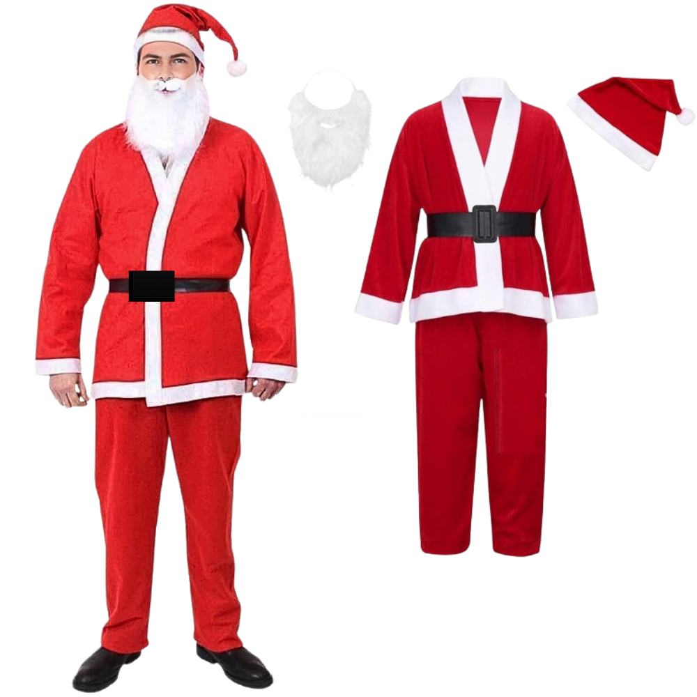 Santa Costume w/ Beard, Belt & Pouch for Christmas/ Theme Party for Adults
