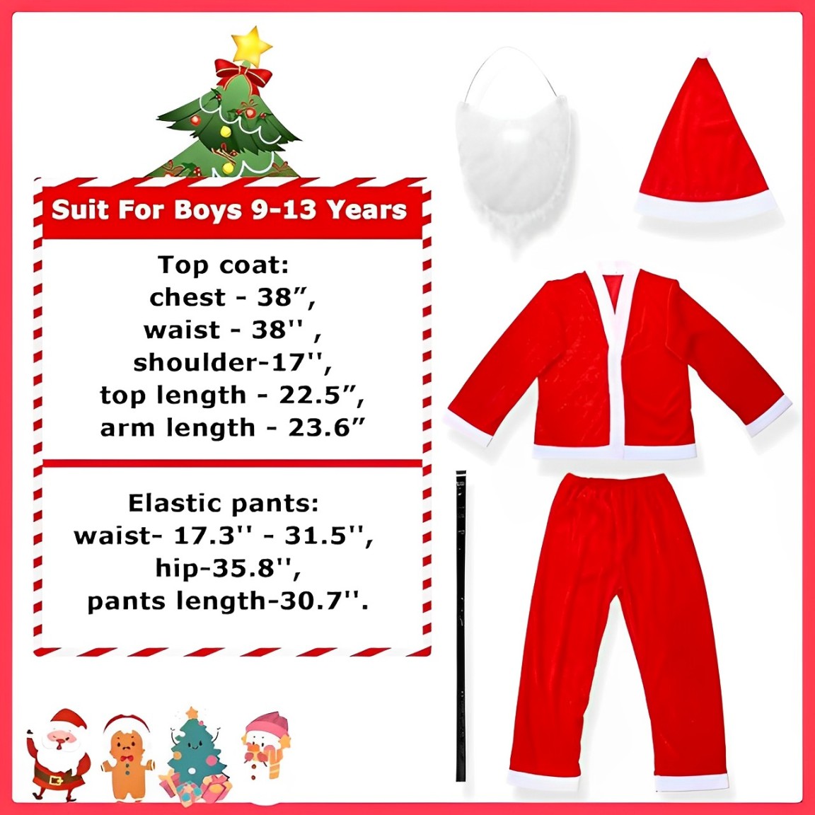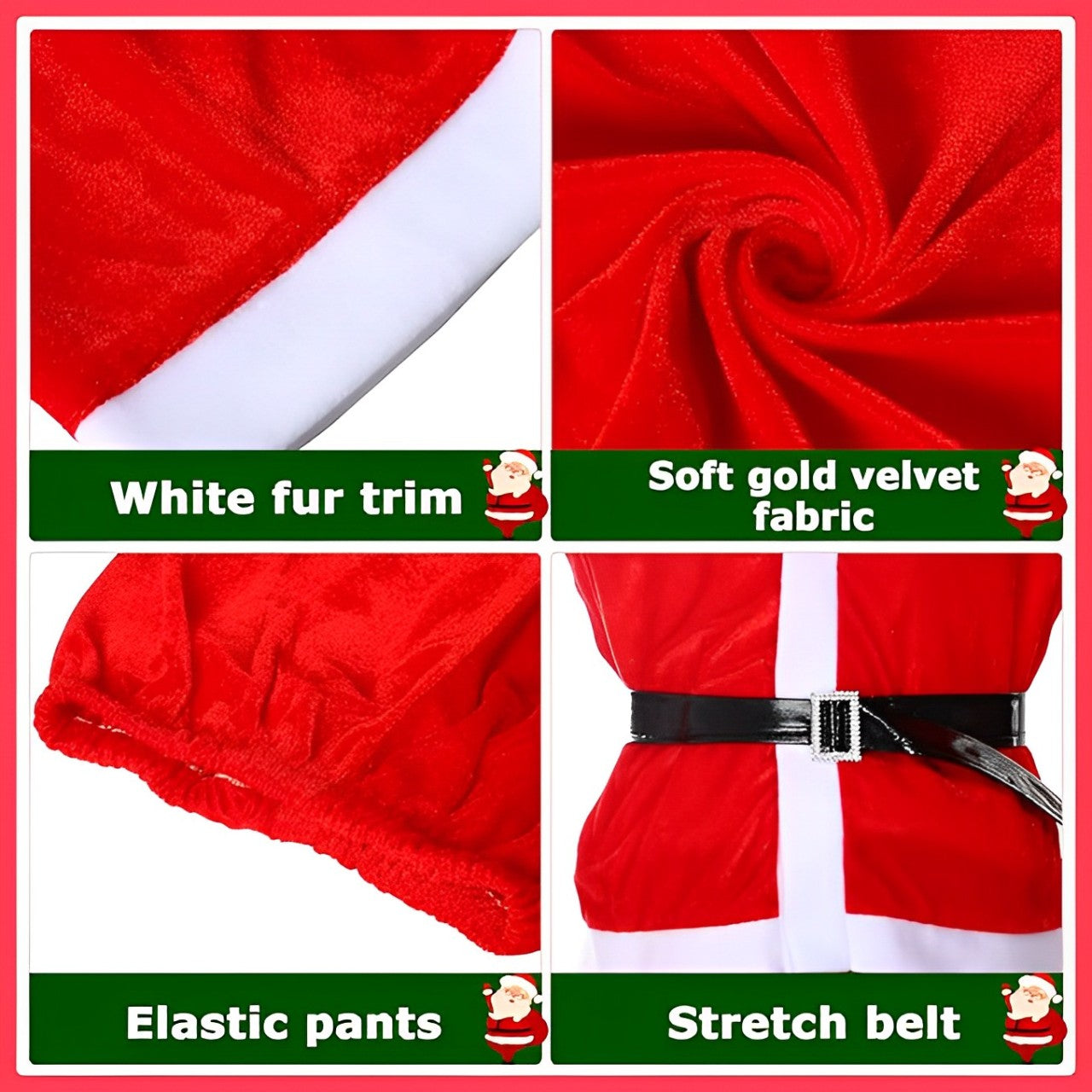 【Multiple Occasions】This velvet Santa Claus outfit is perfect for multiple occasions, from festive parties to holiday events and school functions. Its versatile design ensures you’ll be the star of any celebration, spreading Christmas cheer wherever you go!
