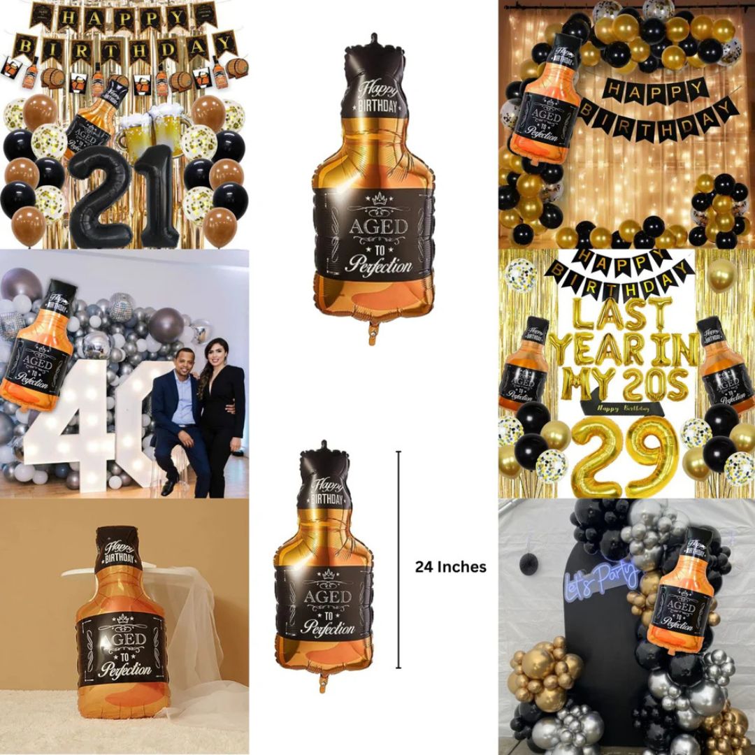 THEME: These Whiskey bottle-shaped Aged to Perfection foil balloons are perfect for all Cocktail Parties. Great for valentine's day, cocktail parties, bachelor's decoration, carnival or festival. They will surely light up the environment & add a completely fresh look.