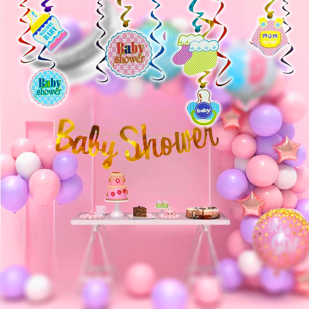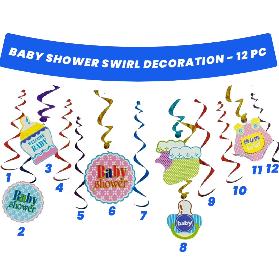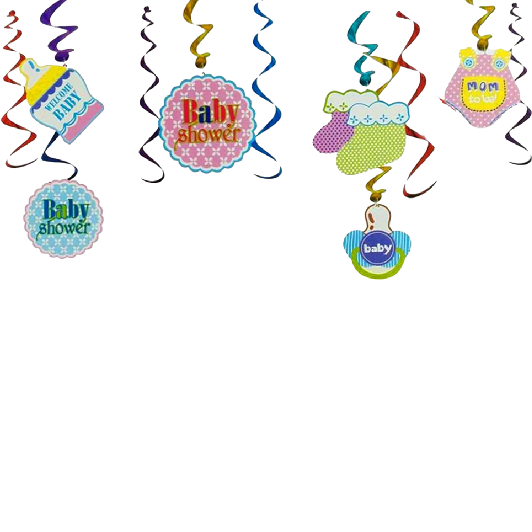 Your new bouncing baby will love gazing up at Welcome Baby Baby Shower Swirl Decorations. With attached string, these welcome baby decorations are easily displayed from the ceiling or trees to complete your sip-and-see or Baby Shower party. Pack includes a set of 12 Swirls. 6 Swirls are along with 5" Cutouts and 6 Swirls are plain, without Cutouts.