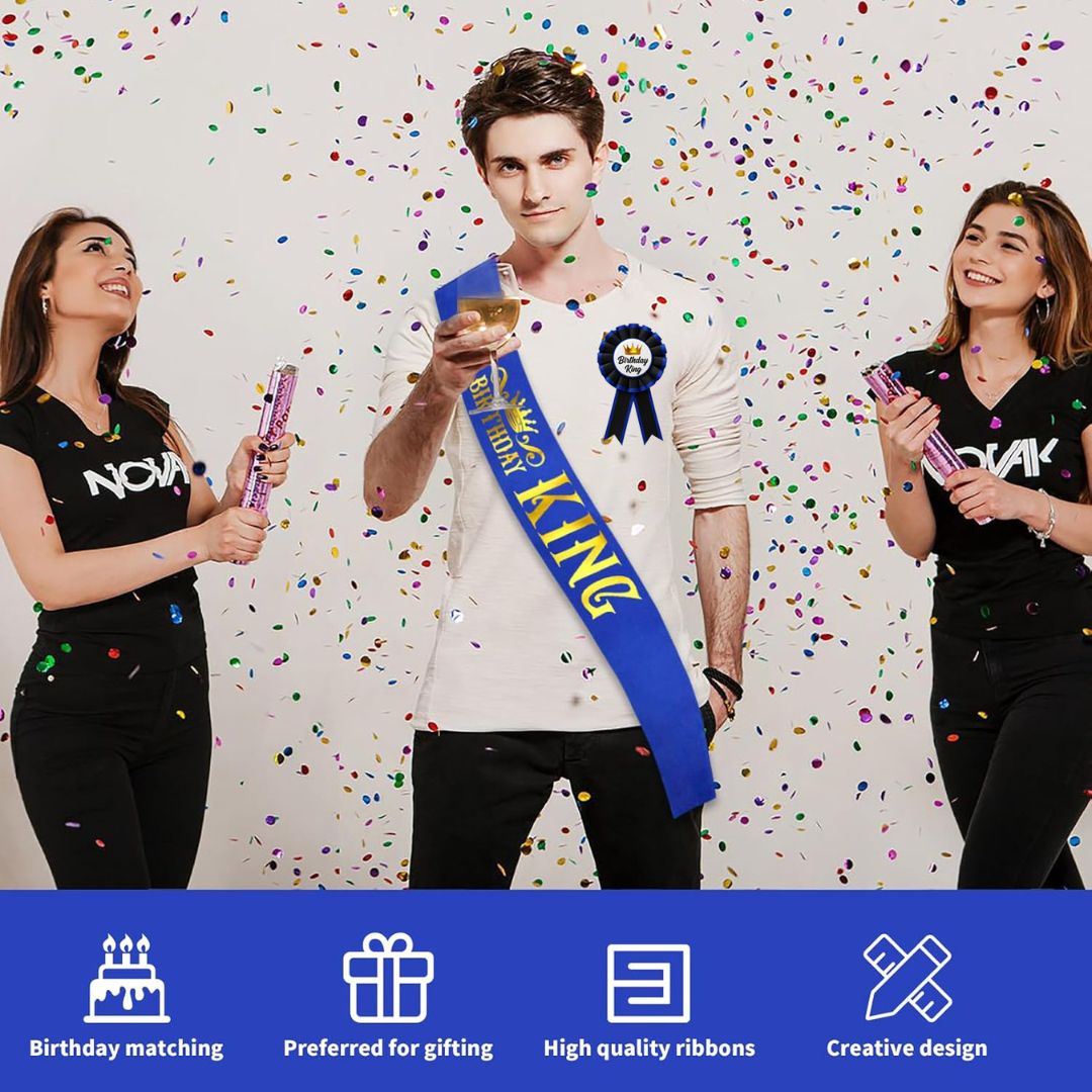 All-in-One Birthday Celebration Set: This fun and festive combo kit includes a bold "Birthday King" sash, and a matching "Birthday Boy" badge pin—everything you need to make the birthday boy feel like royalty.