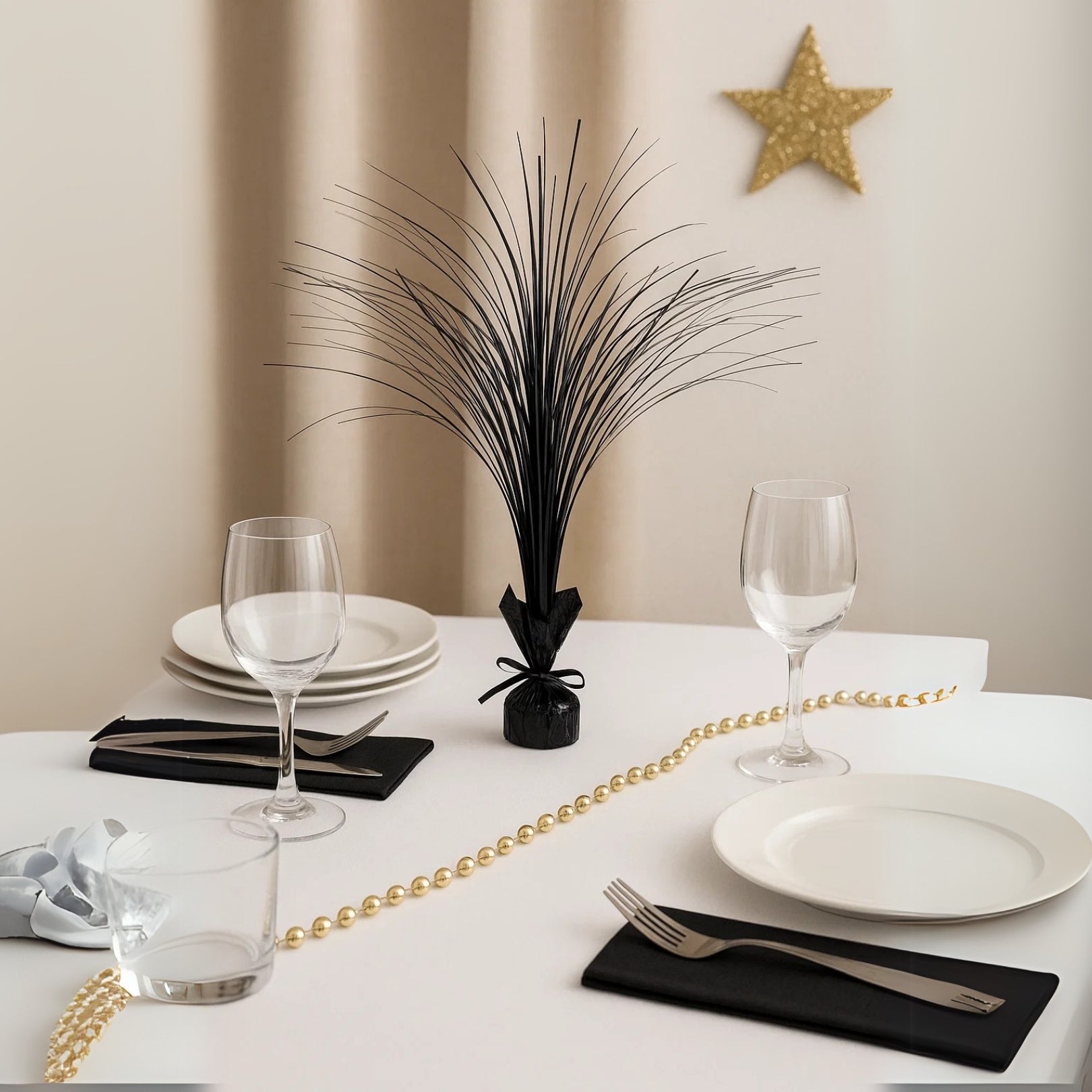 Elegant & Eye-Catching Table Decor : Add instant charm to your event with the Black Spray Centerpiece – Large. Featuring a fountain of shimmering black metallic strands, it brings bold elegance to any table. Ideal for birthdays, anniversaries, black-tie parties, or themed celebrations, this centerpiece creates a stunning visual impact while complementing a wide range of color schemes and party styles.