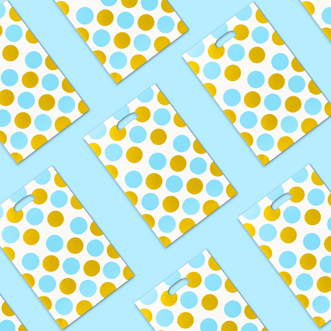 Attractive Blue Polka Dot Design: These treat bags feature a vibrant blue background with crisp white polka dots, adding a cheerful and stylish flair to any party or celebration.