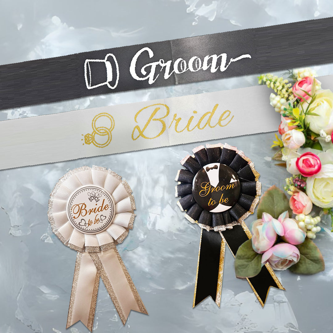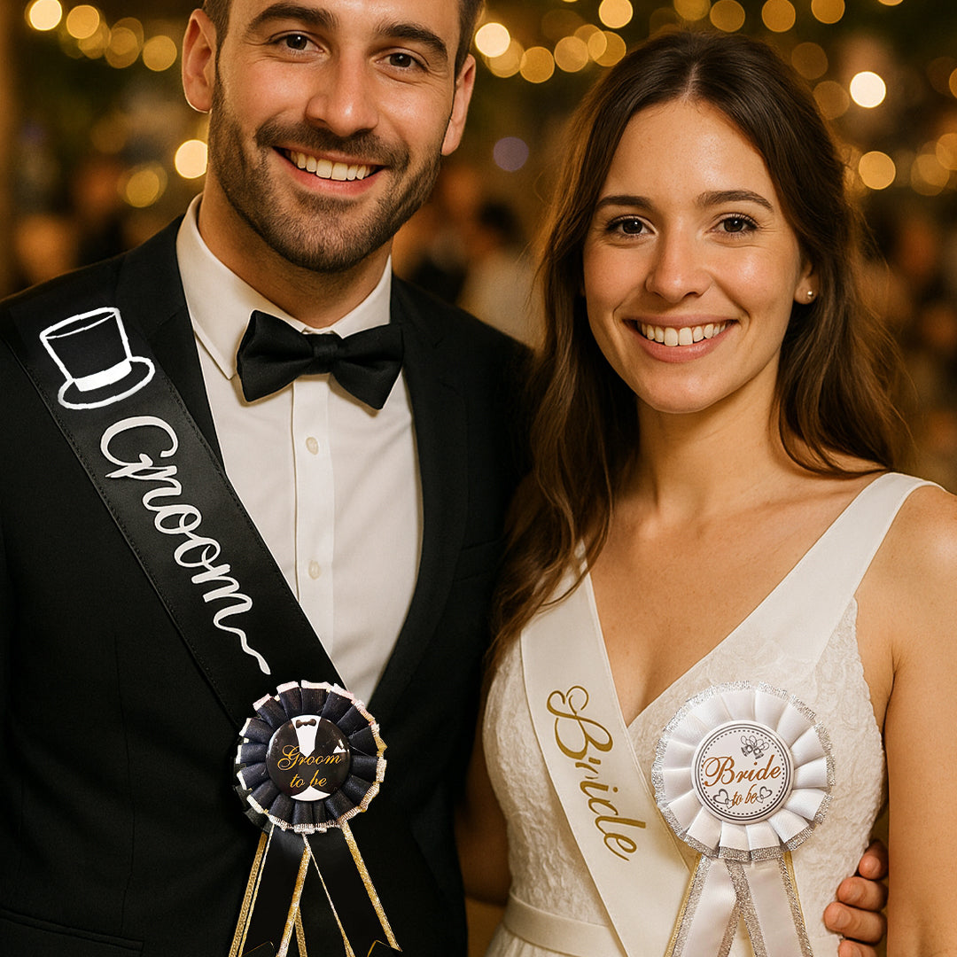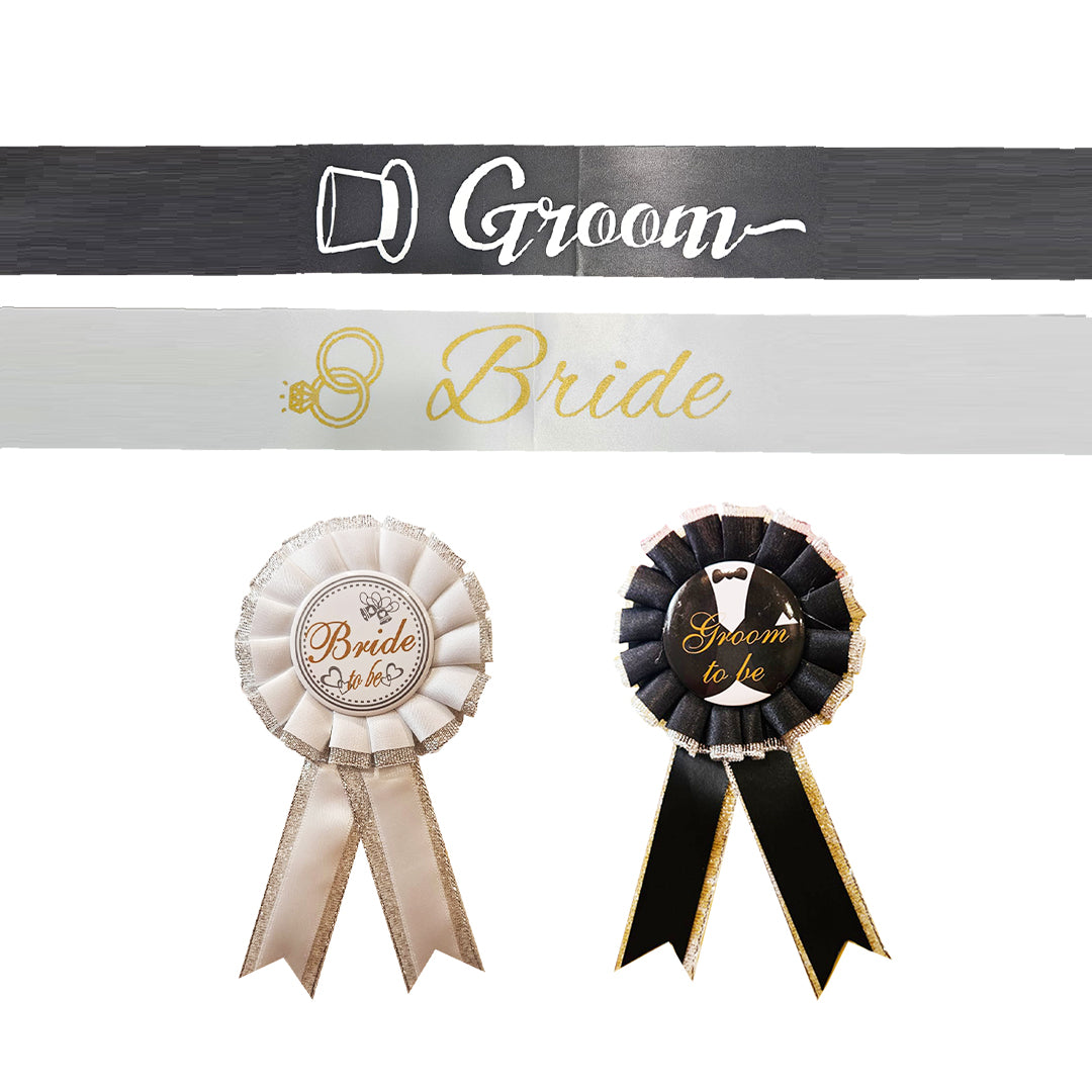 INSIDE THE PACK: The pack contains Bride & Groom Sash with Award Buttons, PACK OF -4