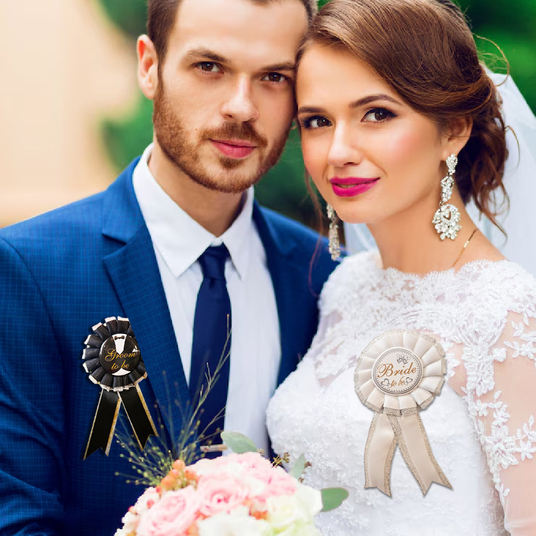 Wanna Party Bride to Be Sash & Groom to Be Sash, Bachelorette Party Supplies Bride to Be and Groom to Be Rosette Tinplate Button Badges for Weddings, Bridal Shower, Bachelors & Bachelorette Party-Pack of 4