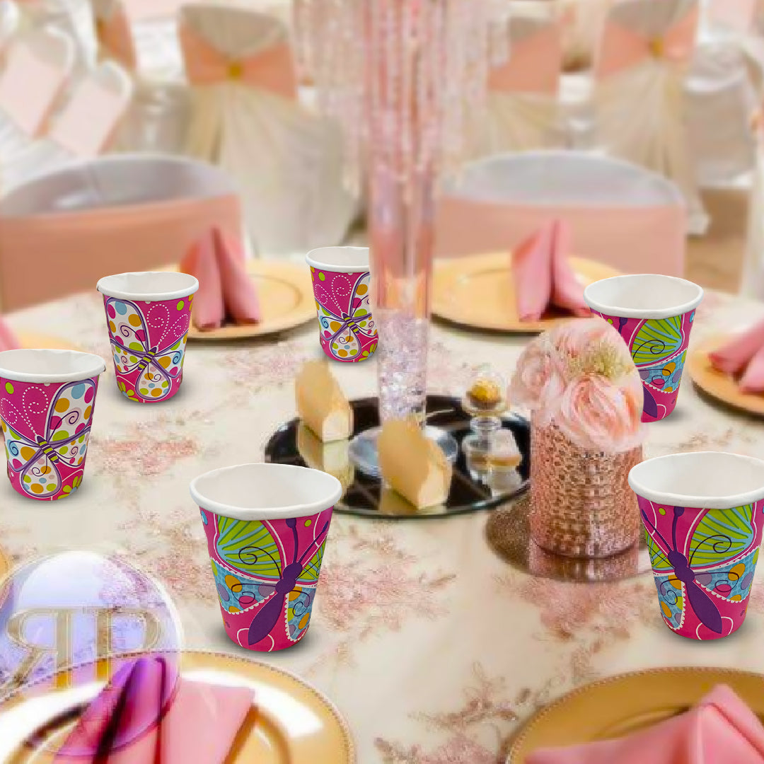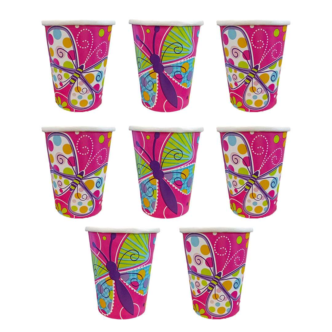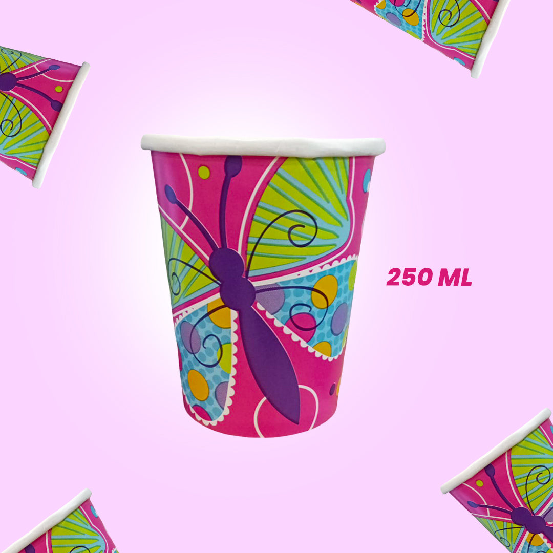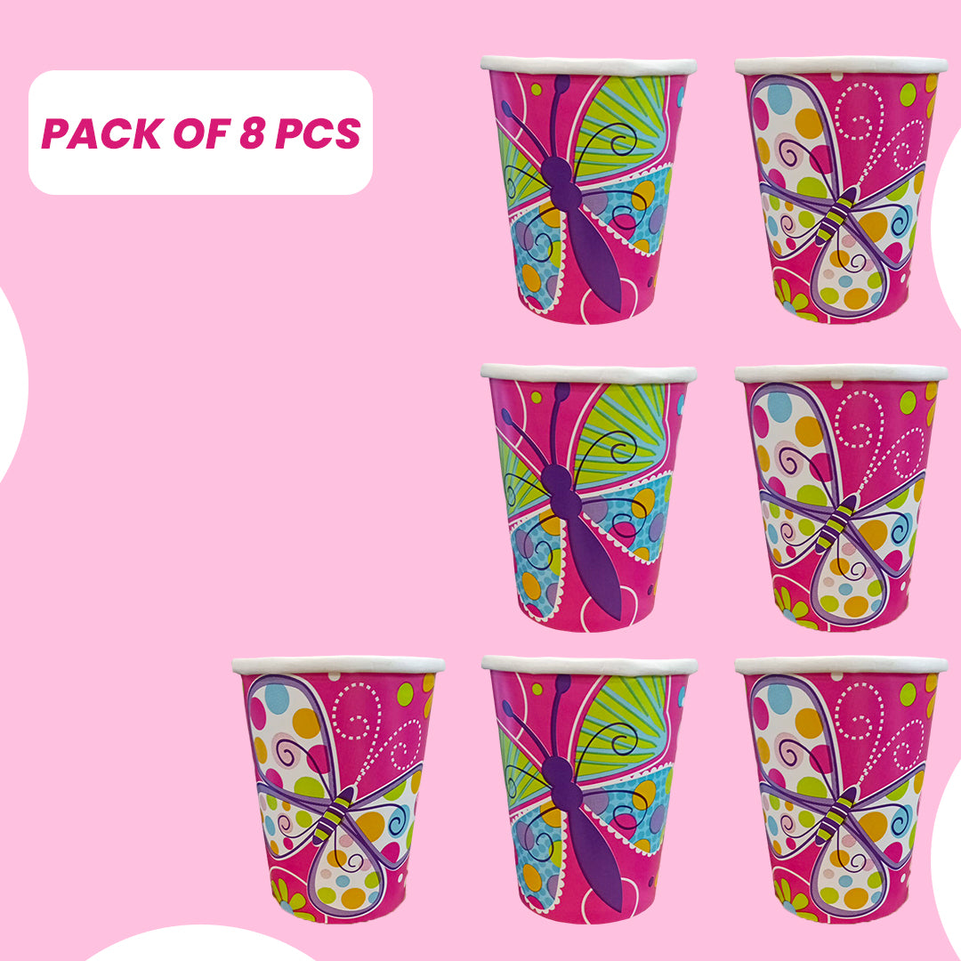Butterfly & Flowers Theme Party Paper Cups - 250ML - 8PC