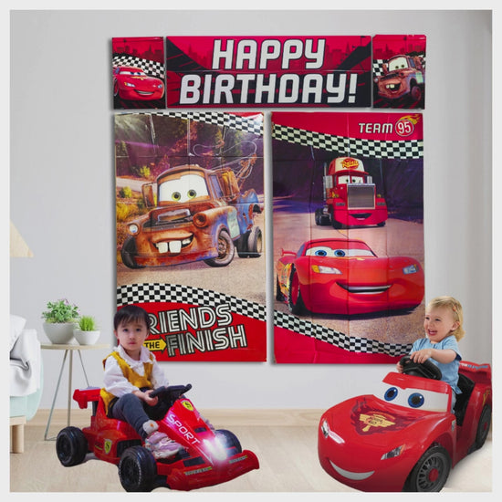 Exciting Cars-Themed Backdrop: Features popular characters and scenes from the hit animated movie Cars, making it a perfect decoration for themed parties.