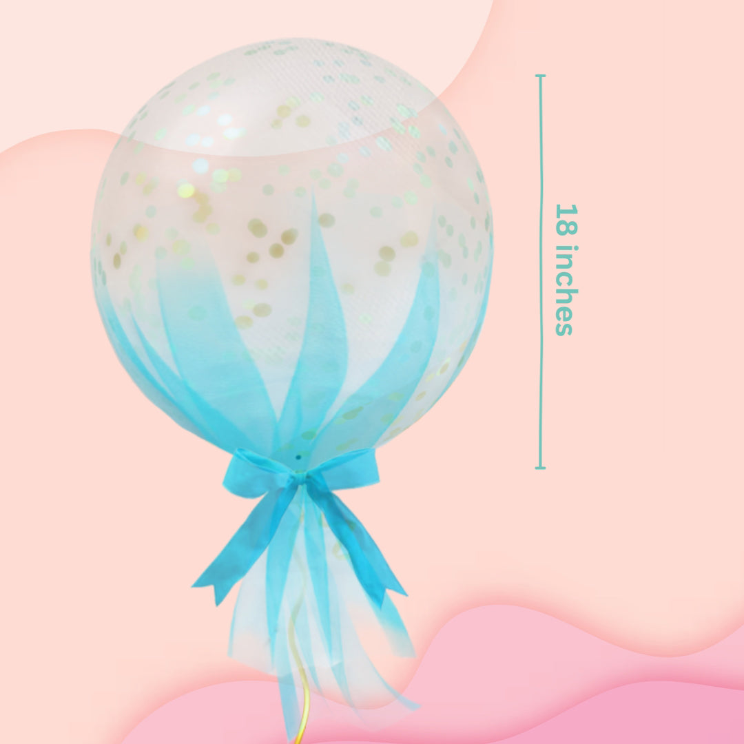 Clear Balloon With Blue Net And Golden Confetti - 18 inches - 1PC