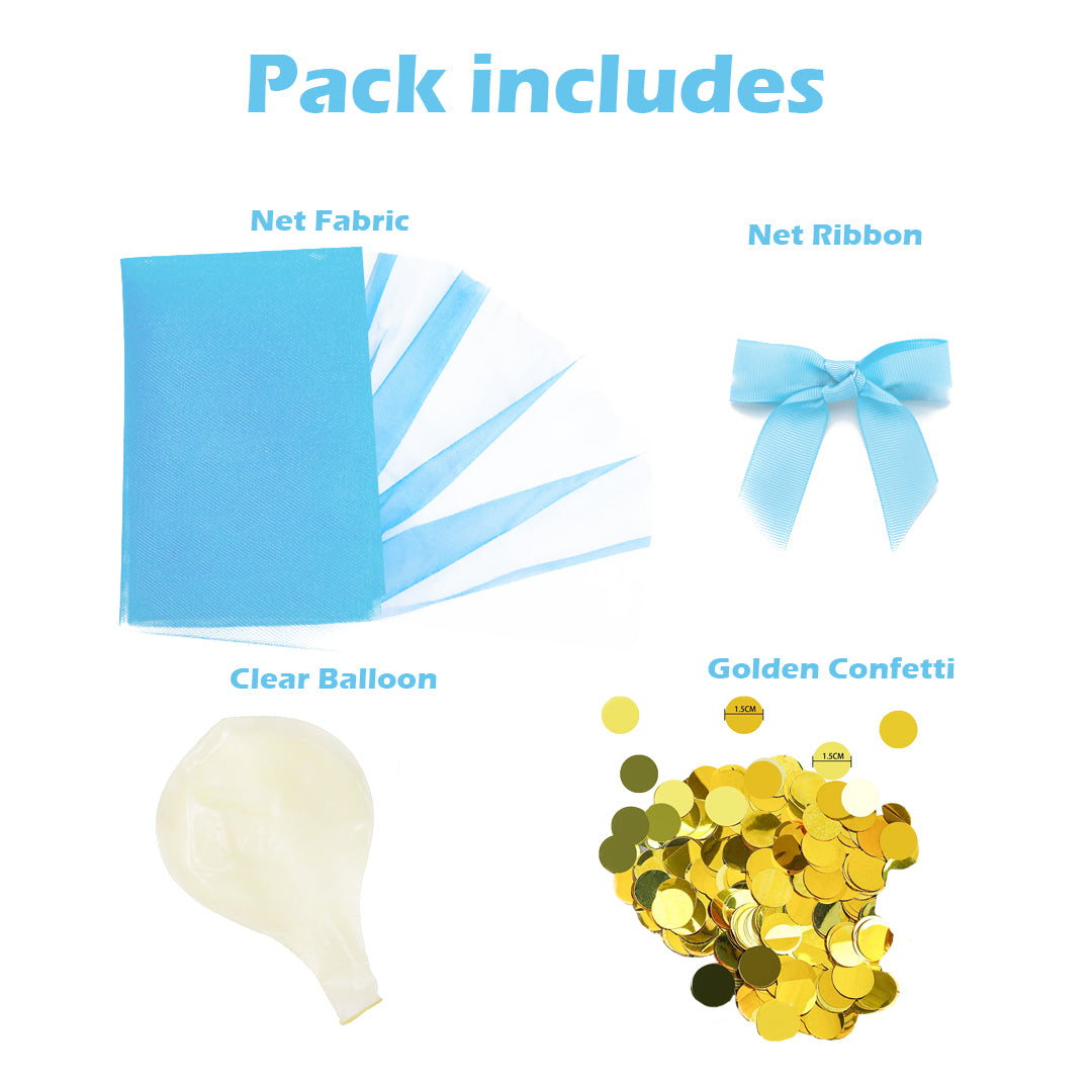 Elegant Decorative Touch for Any Event: Transform any space into a festive and lively environment with this beautifully designed clear balloon. The blue net adds a graceful aesthetic, while the golden confetti inside gives it a celebratory charm. Ideal for personal or professional gatherings, this balloon sets a joyful tone without overwhelming your decor theme. It’s simple, stylish, and adds charm to every special moment.
