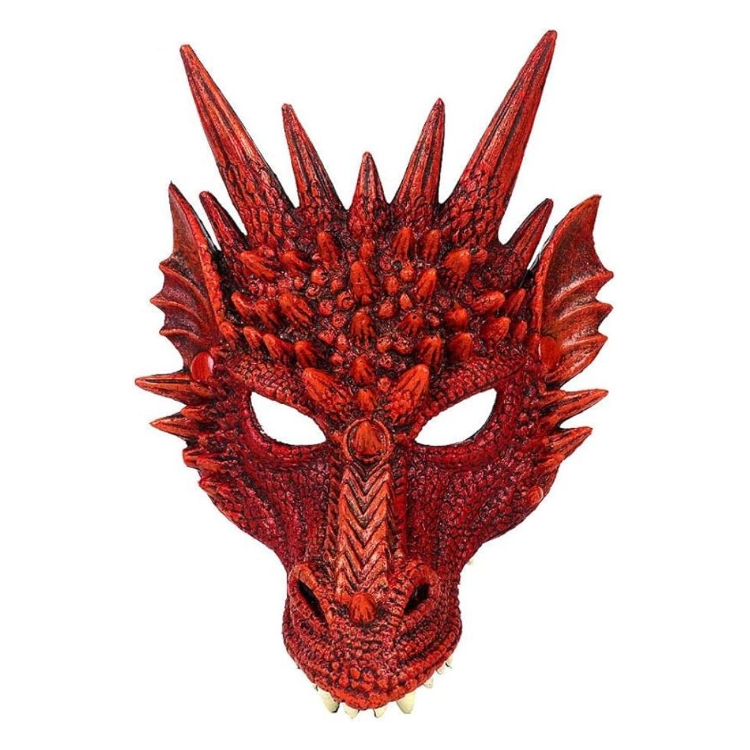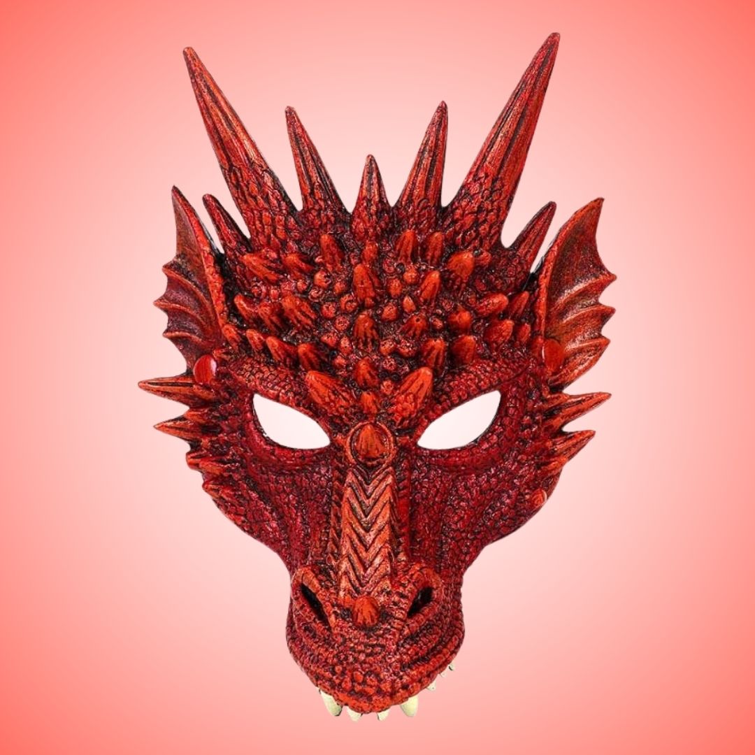 Fierce Dragon Design: This striking red dragon mask features dramatic sculpted details like sharp scales, fierce horns, and menacing eyes, instantly transforming you into a mythical beast ready to rule any costume party or Halloween event.