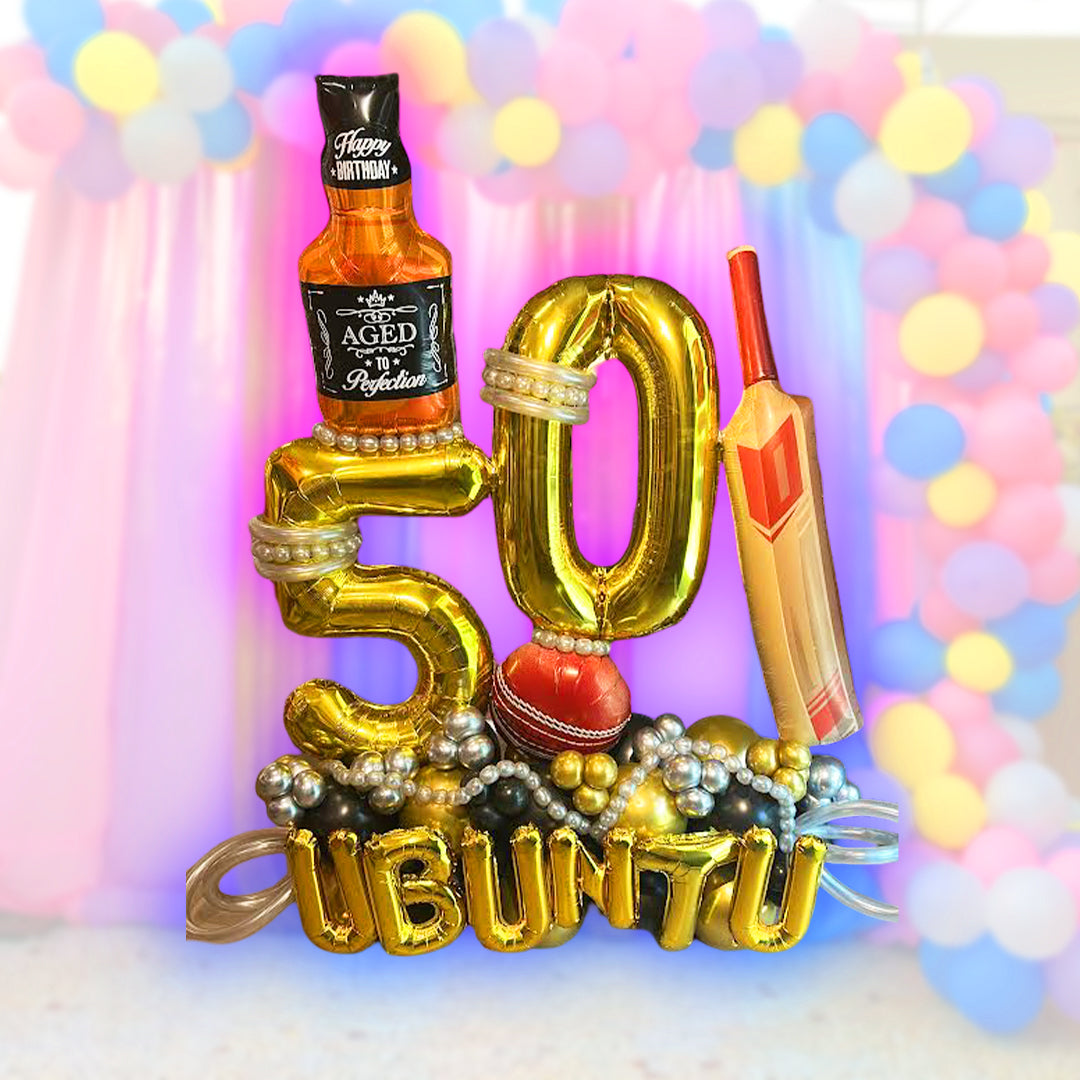 Celebrate a cricket lover's big 5-0 with our Cricket Theme 50th Birthday Balloon Bouquet! This bouquet includes 5 cricket-themed balloons that are sure to score a six with any fan. Perfect for a birthday party or as a special gift, this bouquet will make any cricket enthusiast's day extra special.