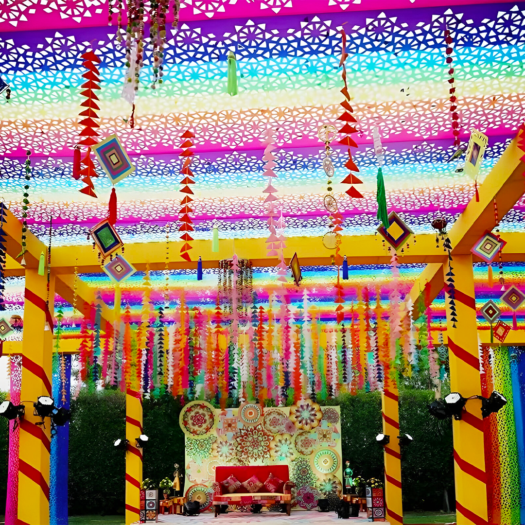 - QUALITY MATERIALS: Crafted from cloth materials, these multicolor triangle net cloth garlands are not only durable but also contribute to sustainable decorating practices. The use of cloth ensures a soft texture and vibrant colors, enhancing the overall appeal and longevity of the decorations. Whether used as door hangings for entrance door, door side hangings decoration, hanging decoration items for wall hanging mandir decoration during festival, or haldi mehndi decoration items for marriage ensures to create a impactful festive ambiance.