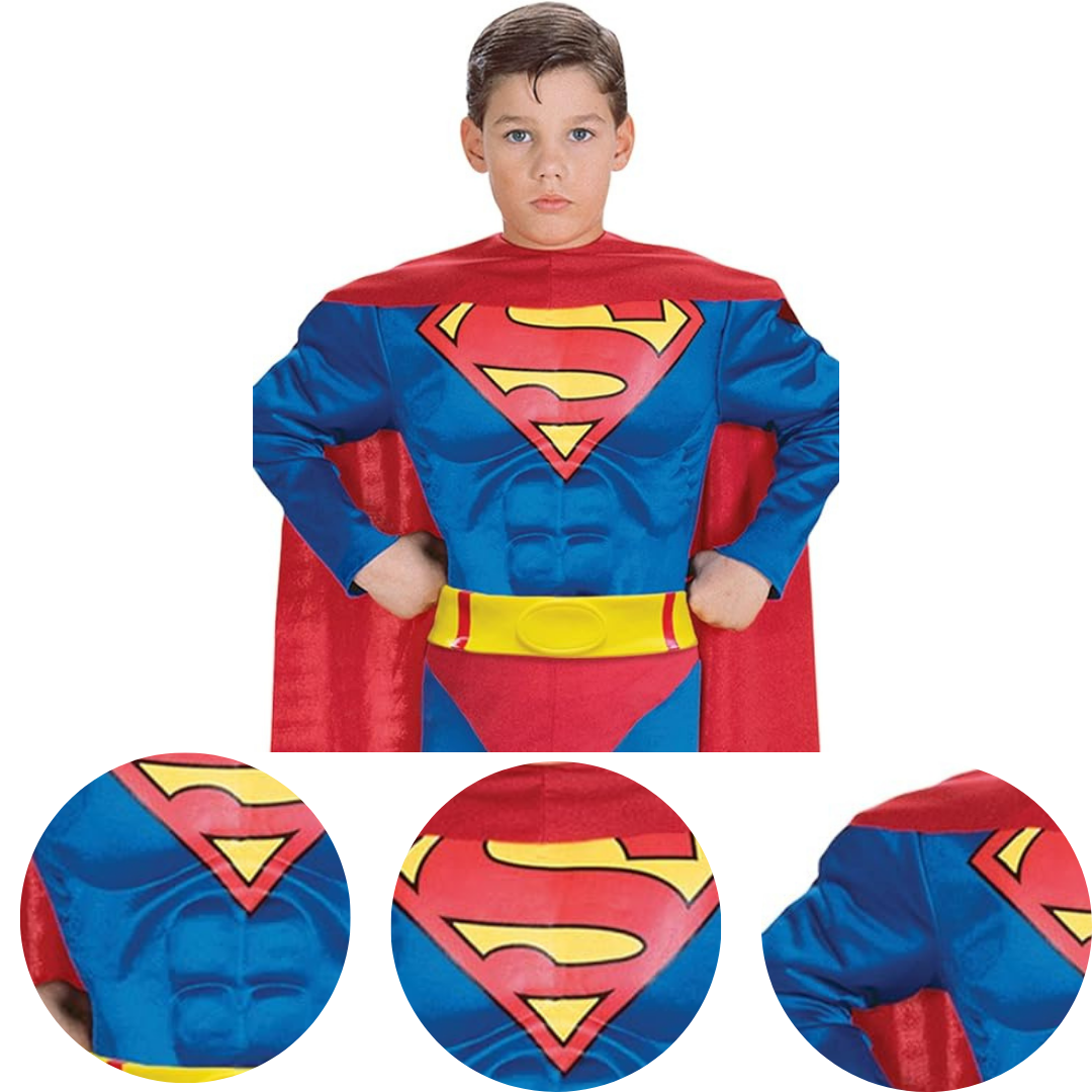 INSIDE THE PACK: This package contains 1 PCS Deluxe Muscle Chest Kids Superman Costume