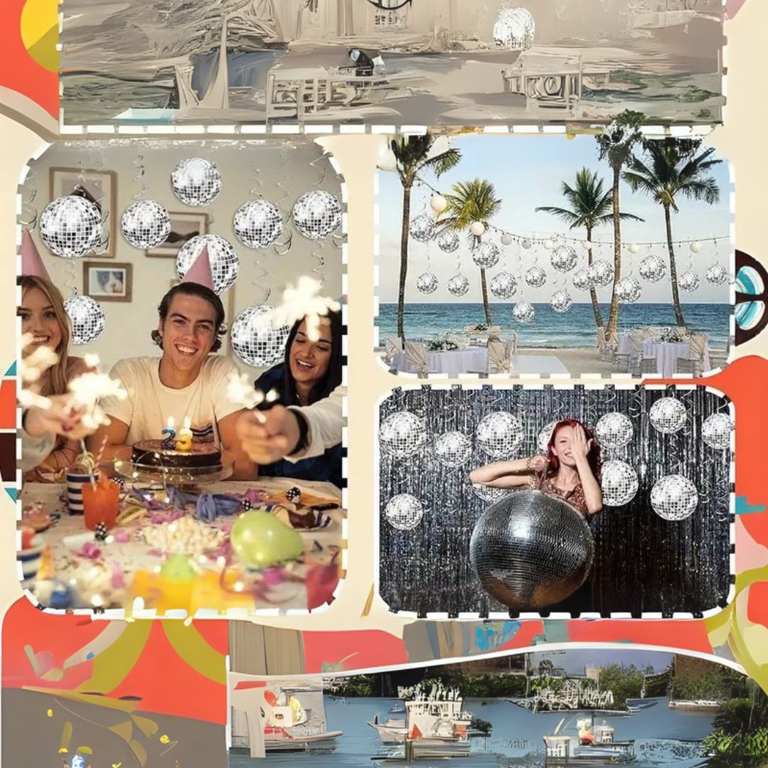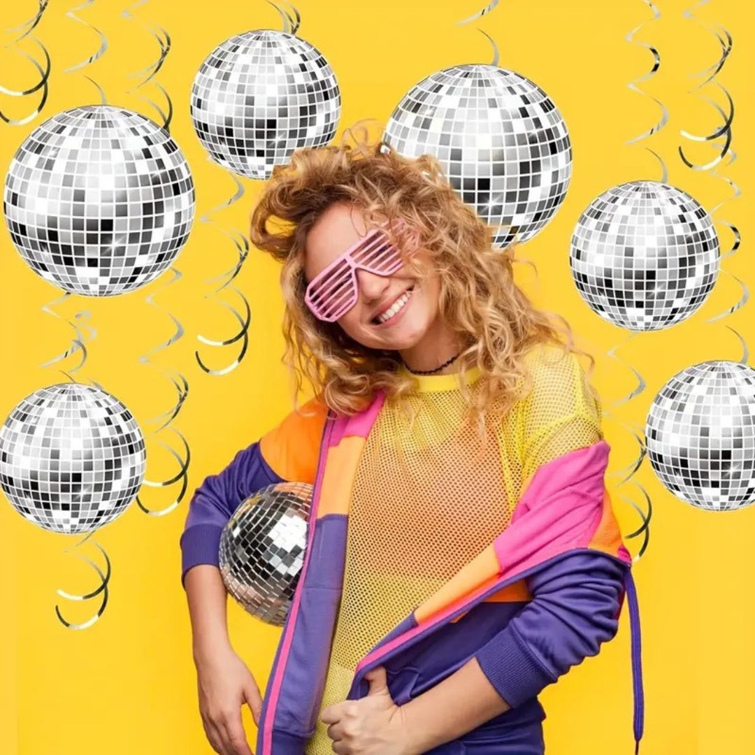 Glamorous Retro Vibe: Perfectly capture the glitz and groove of the '70s and '80s with shimmering disco ball swirl decorations that add instant retro charm to Bollywood, Hollywood, or classic disco-themed parties.