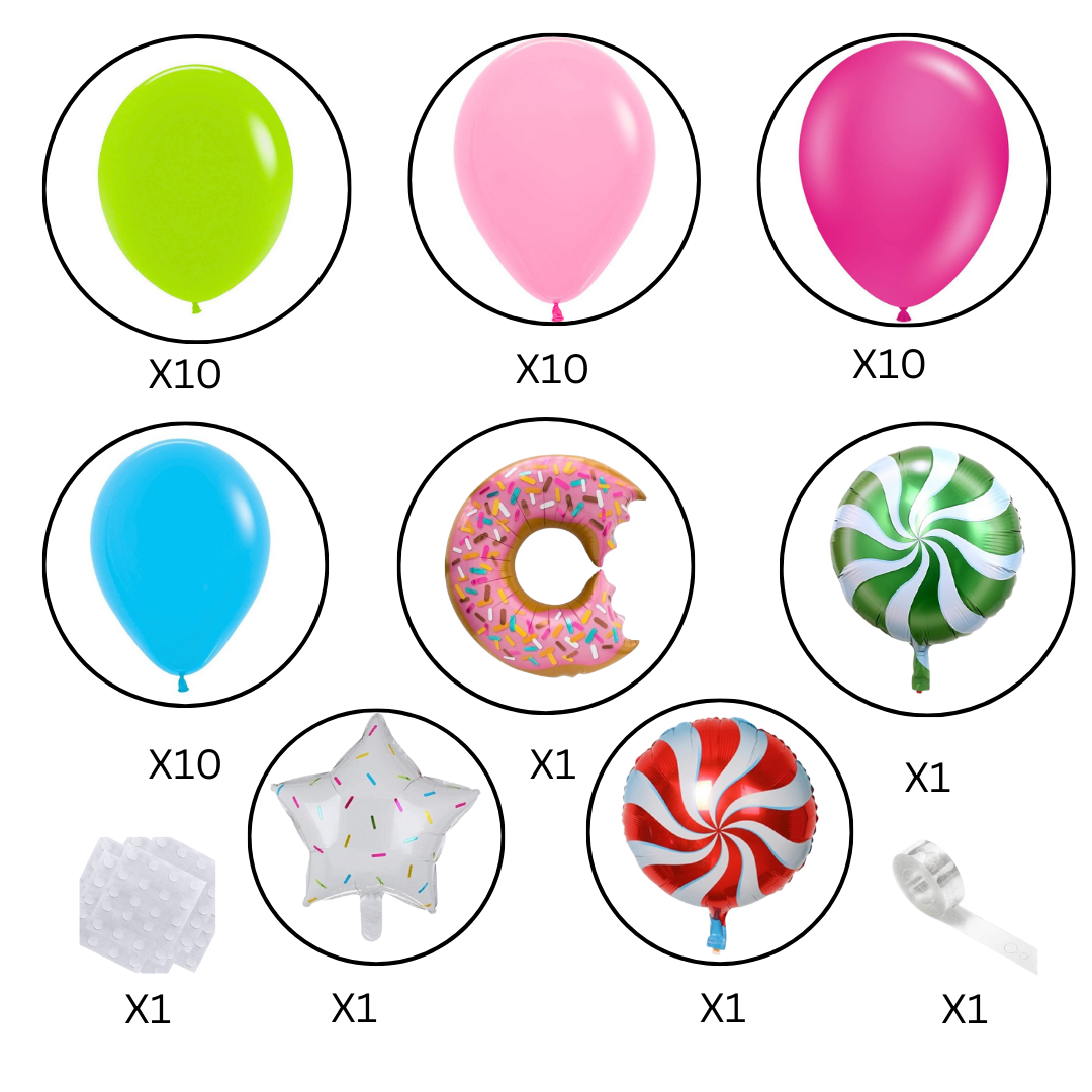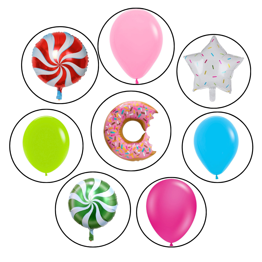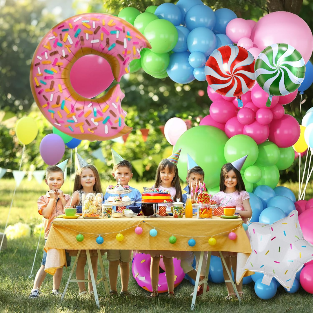 Easy To Assemble: This donut birthday party decorations kit includes balloon arch tape, balloon glue dots,2 Candy shaped 18-inch foil balloon,1 Donut Big Foil Balloon, 1 Donut Sprinkler Balloon, and 40 Latex Multicolor Balloons.. These balloon tools will ease your efforts and will help you make a Dreamy donut balloon arch easier and faster.