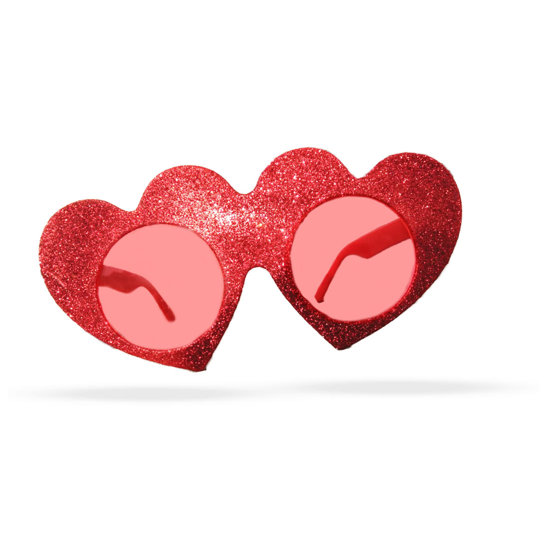 Double Heart Shaped Red Glittery Sunglass - 1PC