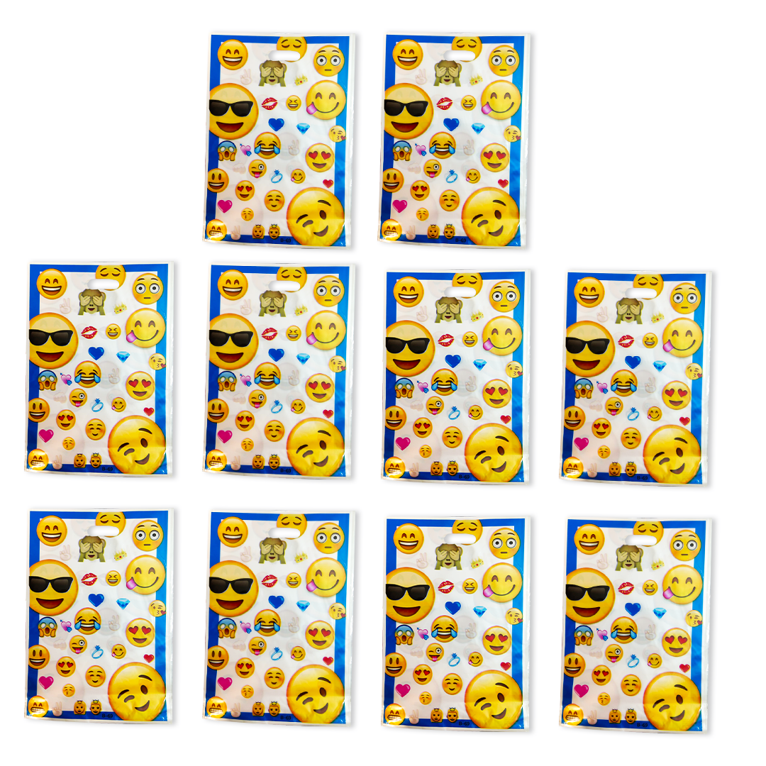 Wanna Party Emoji Smiley Theme Happy Birthday Party Favor Bags /Loot Bags/ Treat Bags 10 PCS Aluminium Film Goodies Loot Bags Bulk for Kids Baby Girls & Boys Birthday Return Gift-12" x 8"
