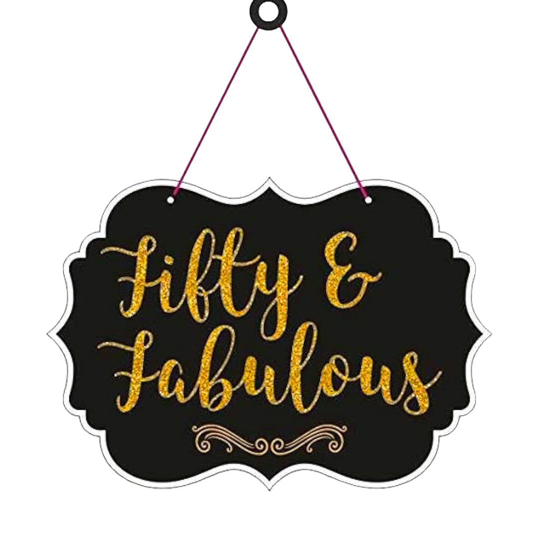 Elegant & Bold Birthday Décor: Celebrate a milestone in style with this "Fifty & Fabulous" hanging board, designed with a chic black backdrop and shimmering gold text. The bold lettering makes a standout statement, perfect for 50th birthday decorations. Whether used as a photo prop or wall accent, it adds a classy, festive flair to your party setting and makes the guest of honor feel truly fabulous on their special day.