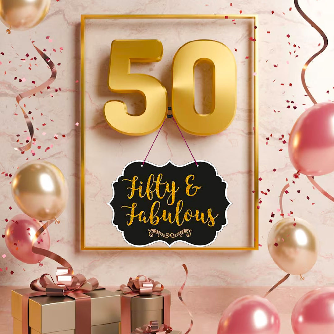 Fifty & Fabulous Hanging Board Decoration - 1PC
