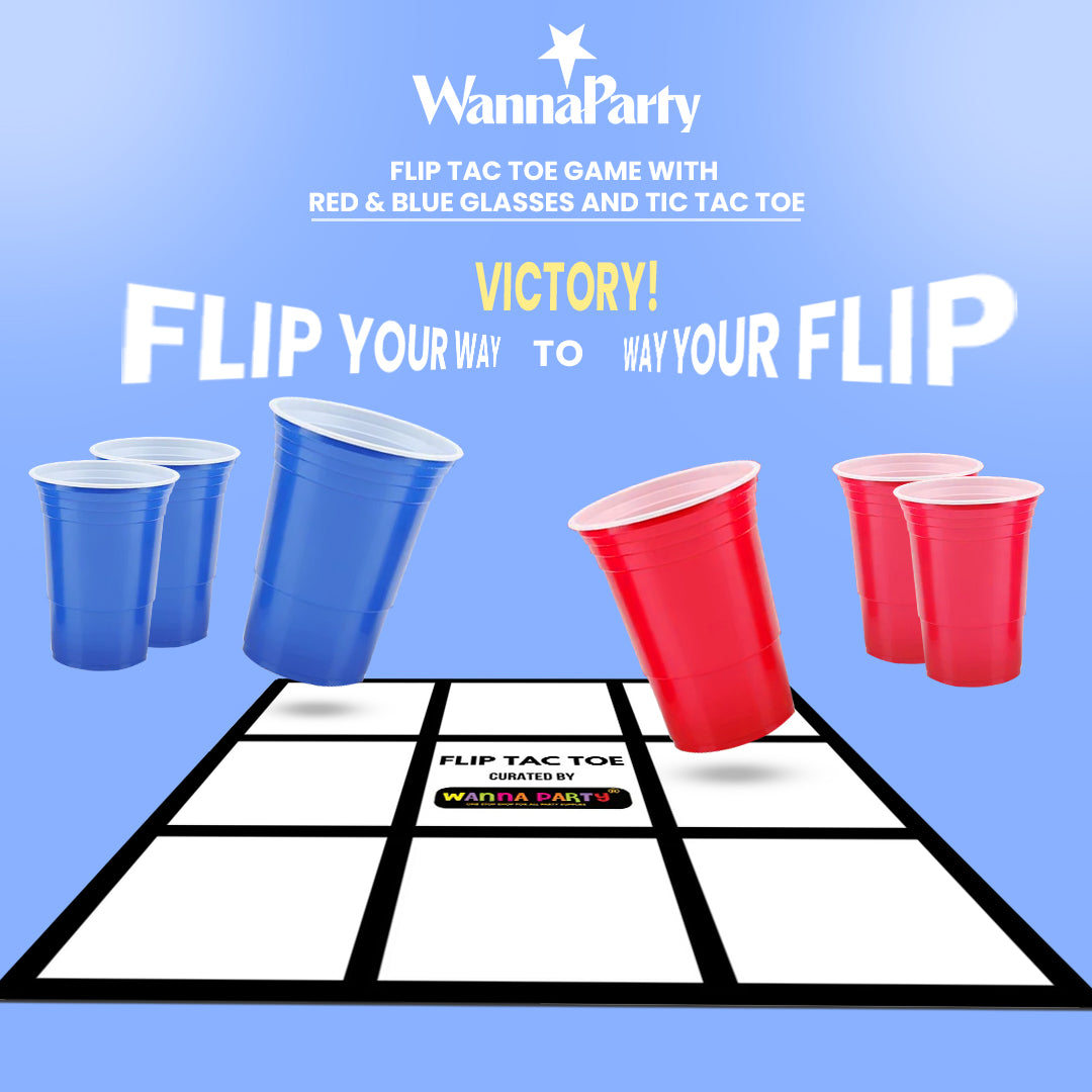 Wanna Party Flip Tac Toe Pong Game With a Twist Including 10 Red Cups with a Mat-Fun New Indoor/Outdoor Game for all Parties, BBQs, Birthdays, Camping, Bachelor/Bachelorette Events, Vacations, College Games and More.