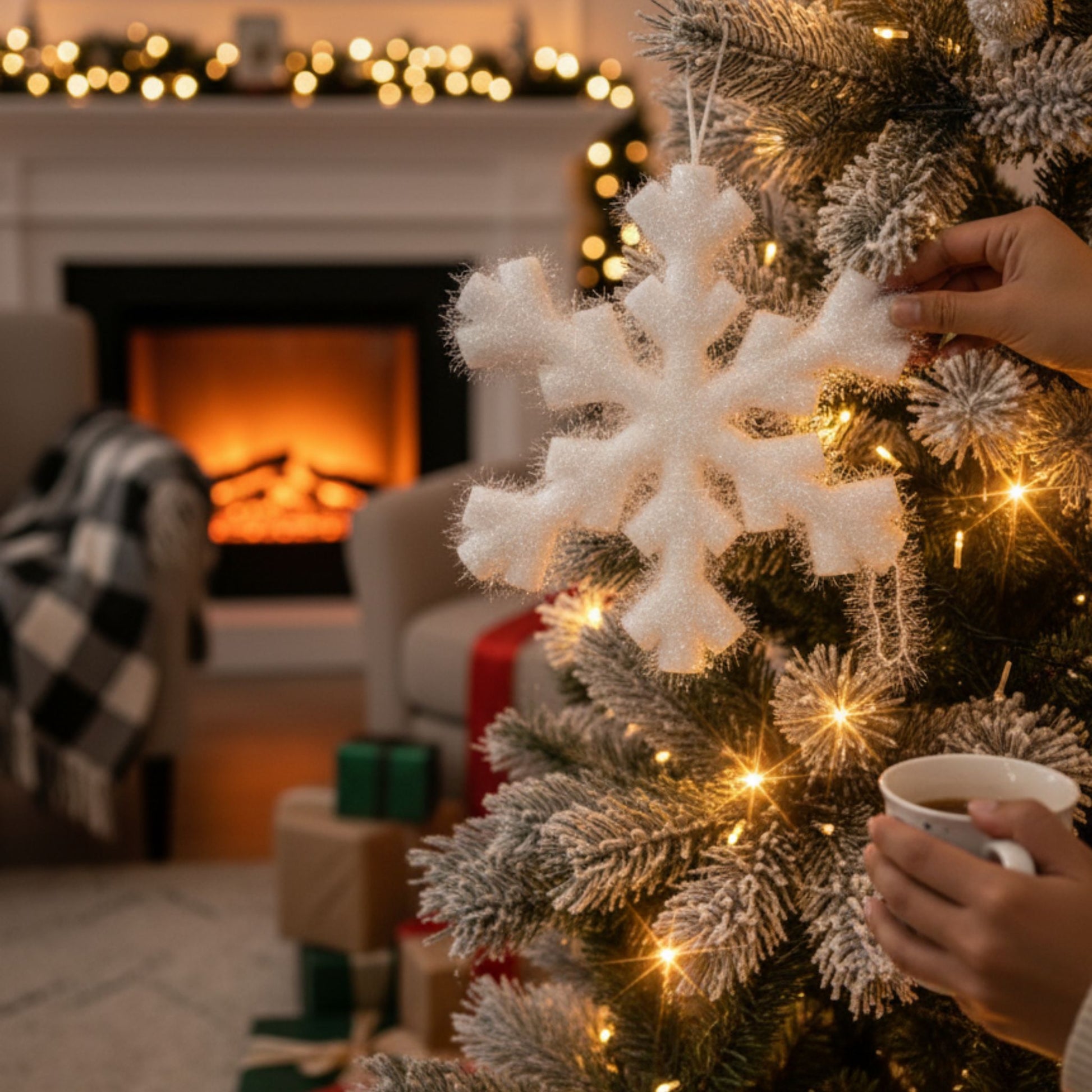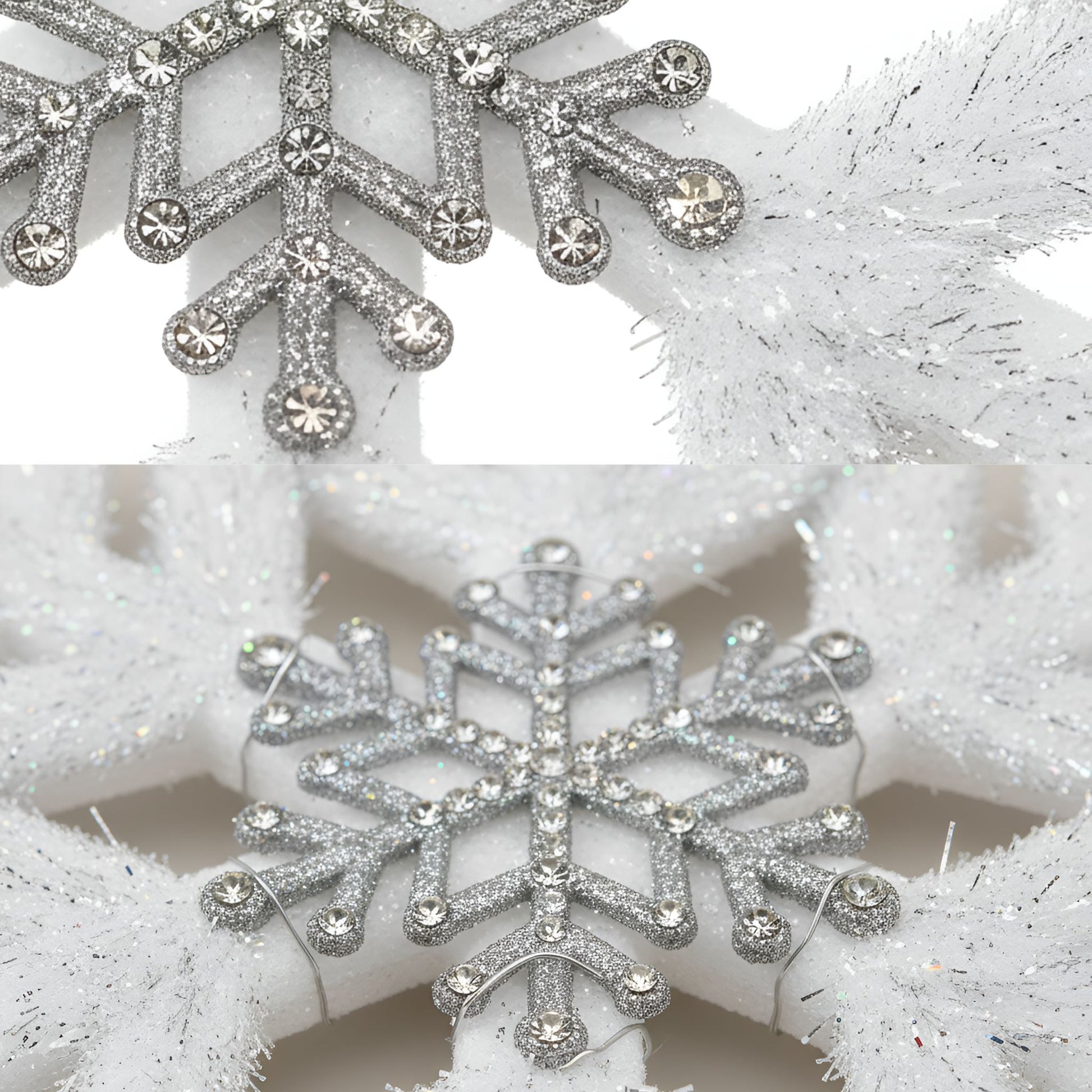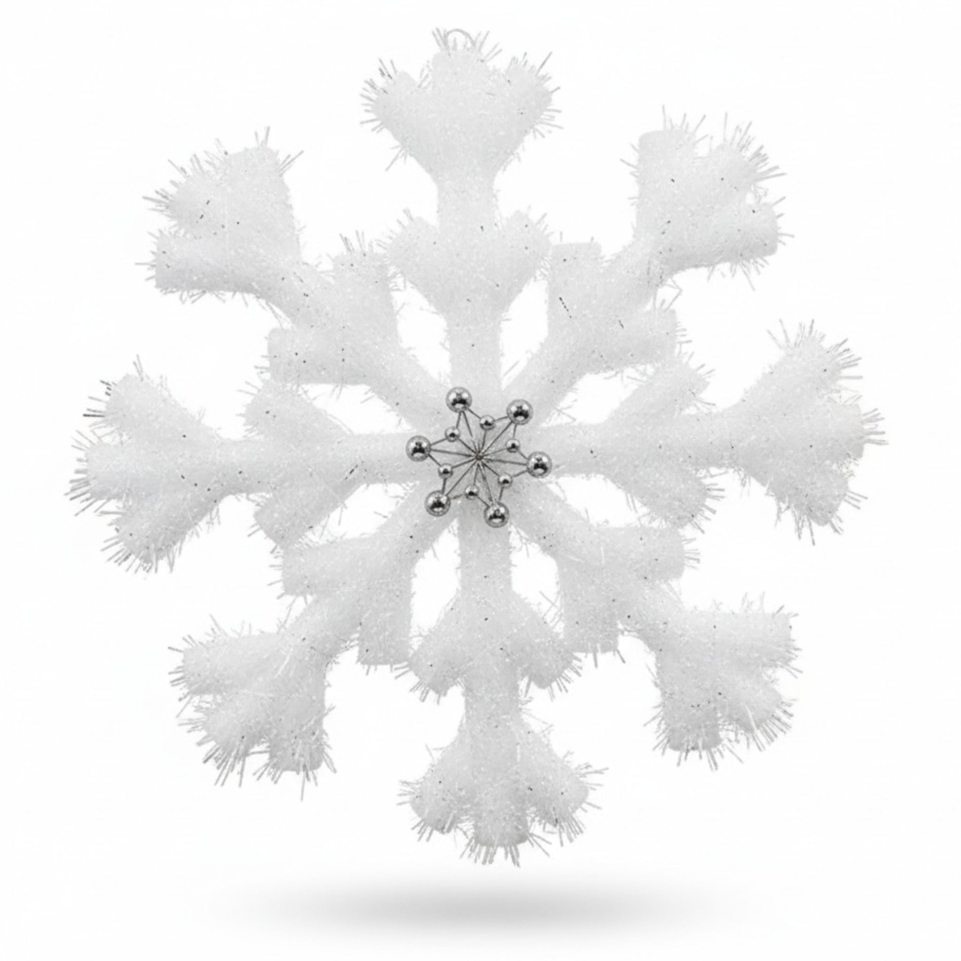 Large 12-Inch Snowflake Decoration: This big, beautifully crafted foam snowflake adds an elegant winter touch to your holiday décor. Its classic white design makes it perfect for Christmas trees, windows, walls, parties, and seasonal displays.