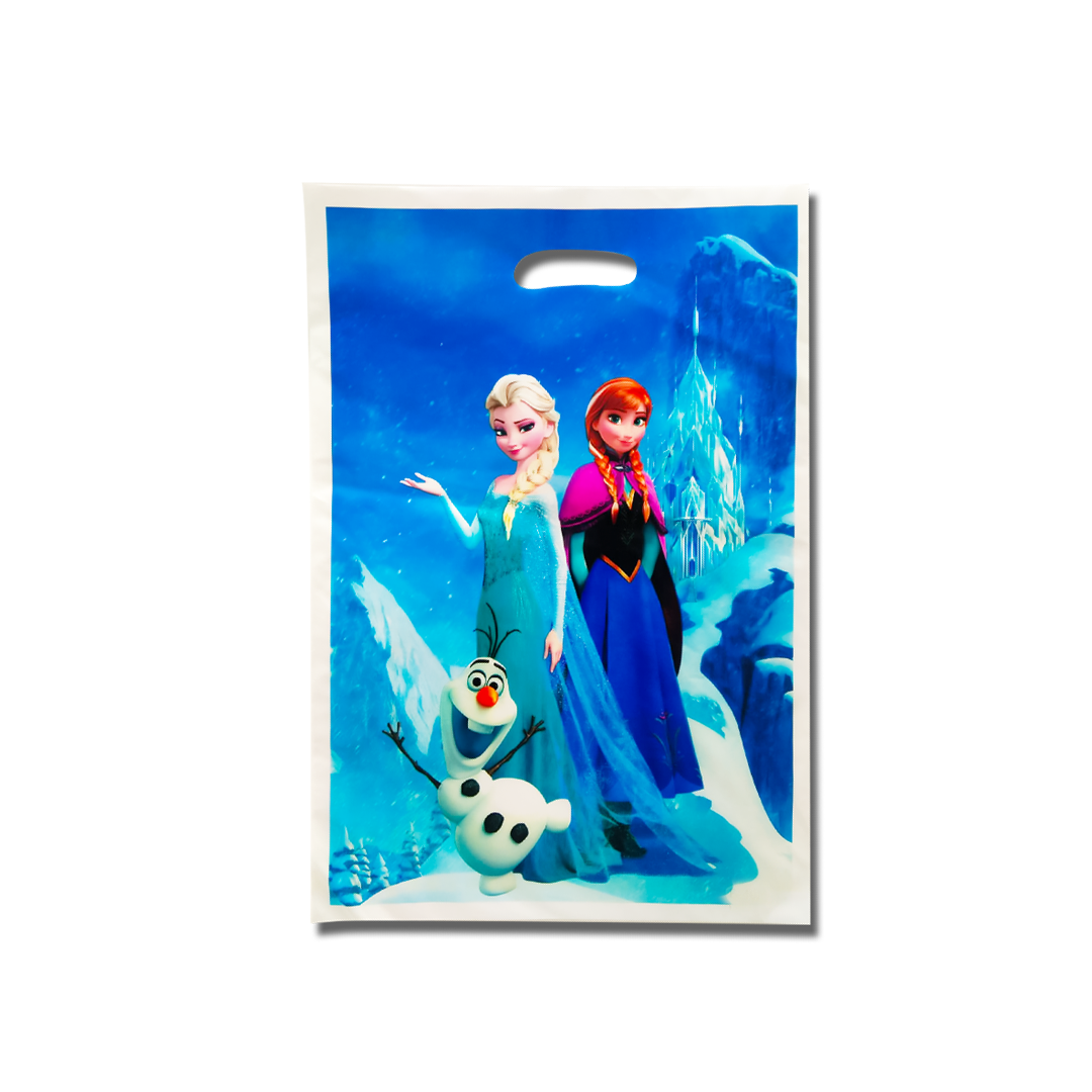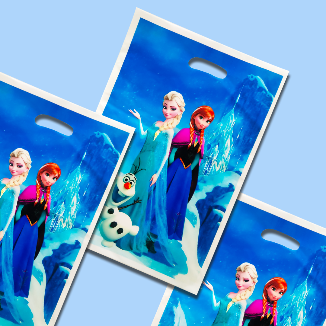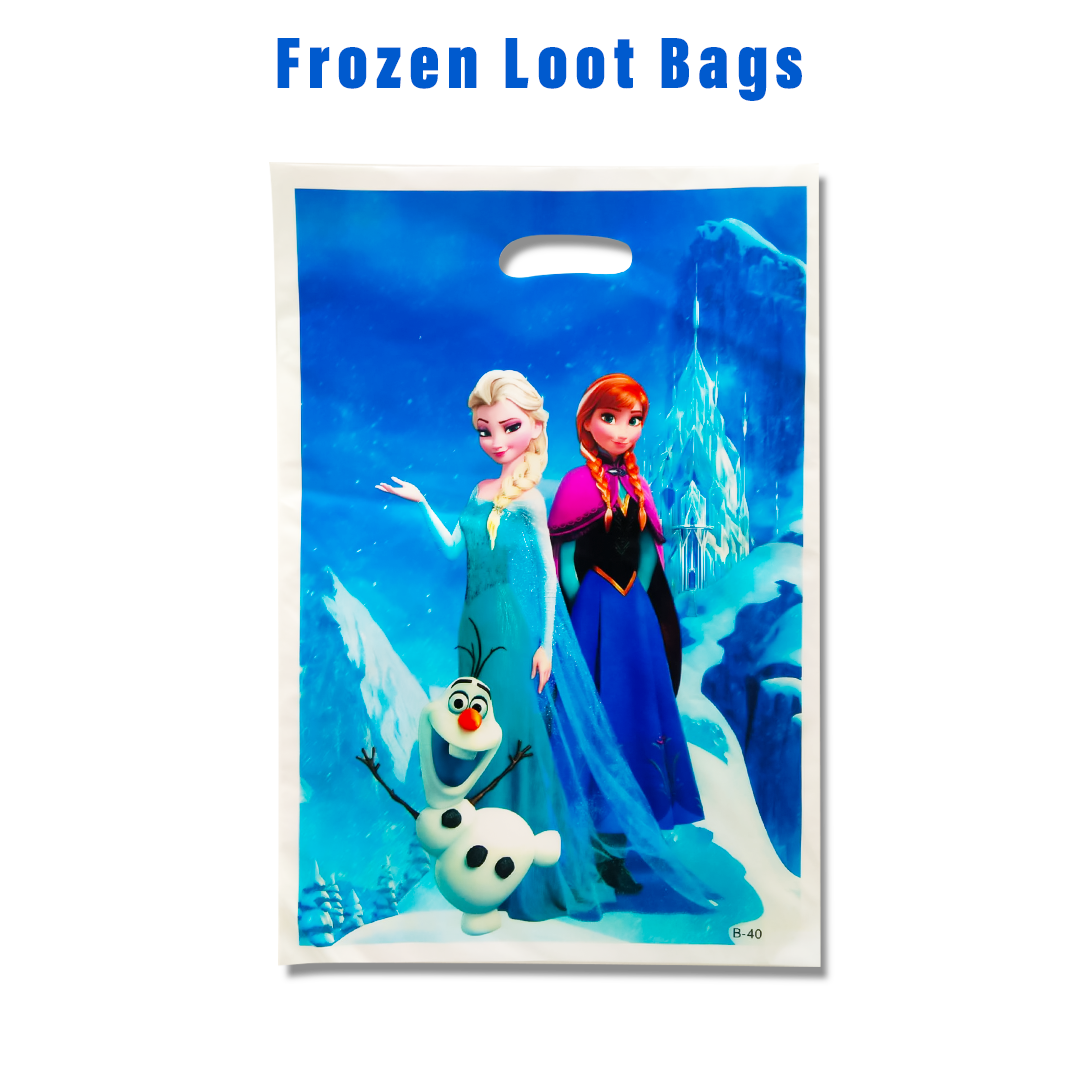 Color Theme: Dominated by frosty blue and white shades with touches of pink, black, and orange, these loot bags create a true Frozen-inspired color palette. The vivid prints look stunning and instantly grab the attention of kids and Frozen fans.