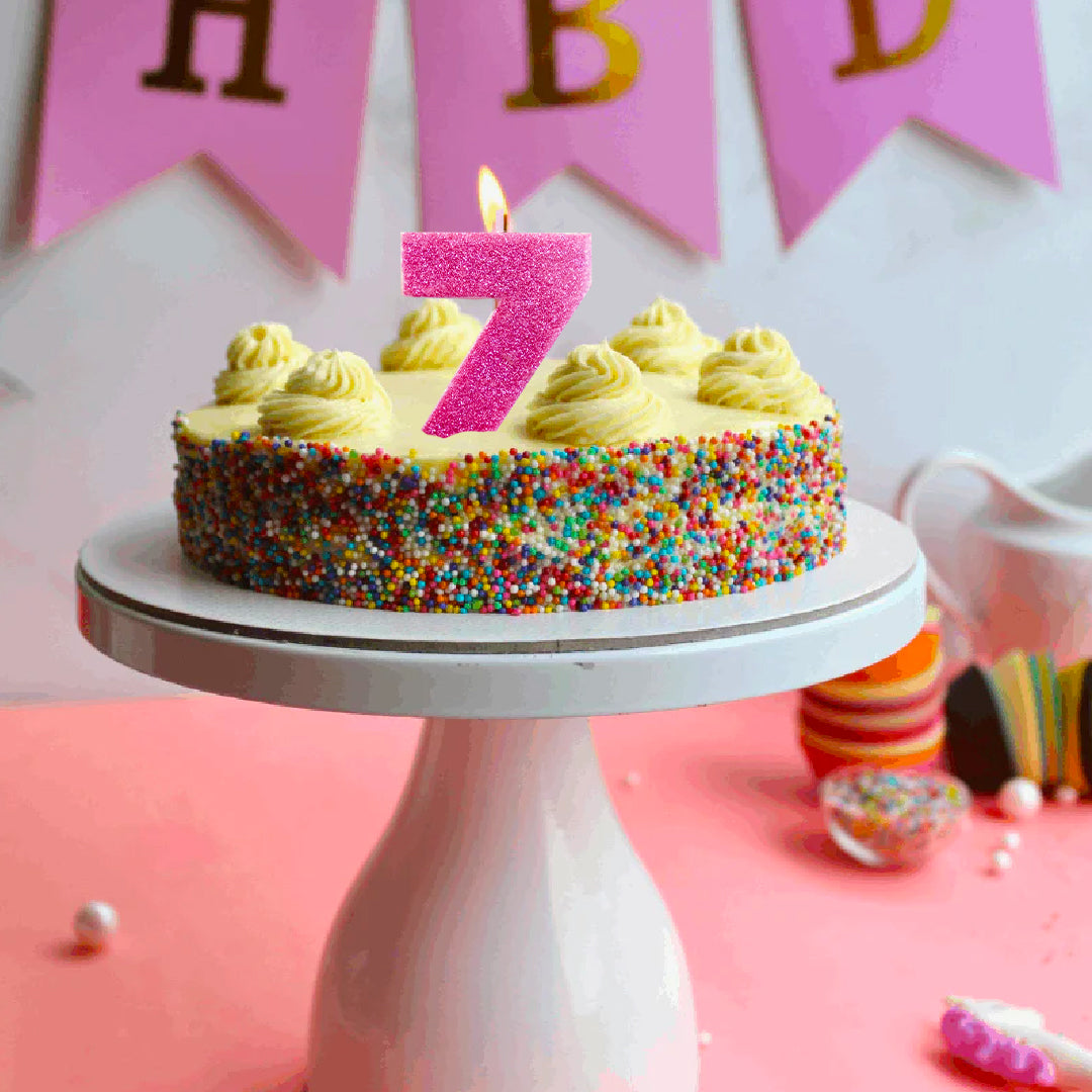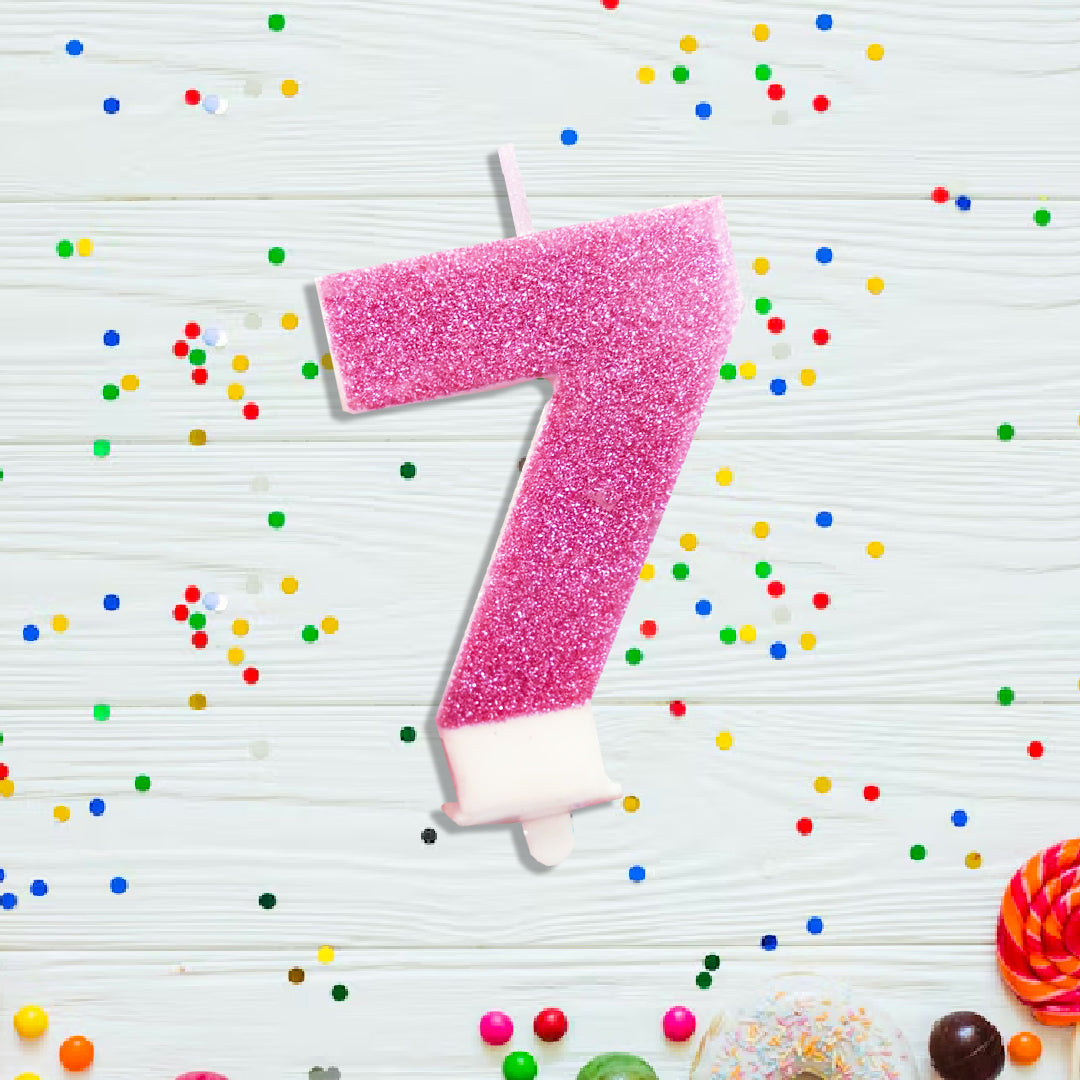 Glitter Number 7 Pink Birthday Candle - 1PC