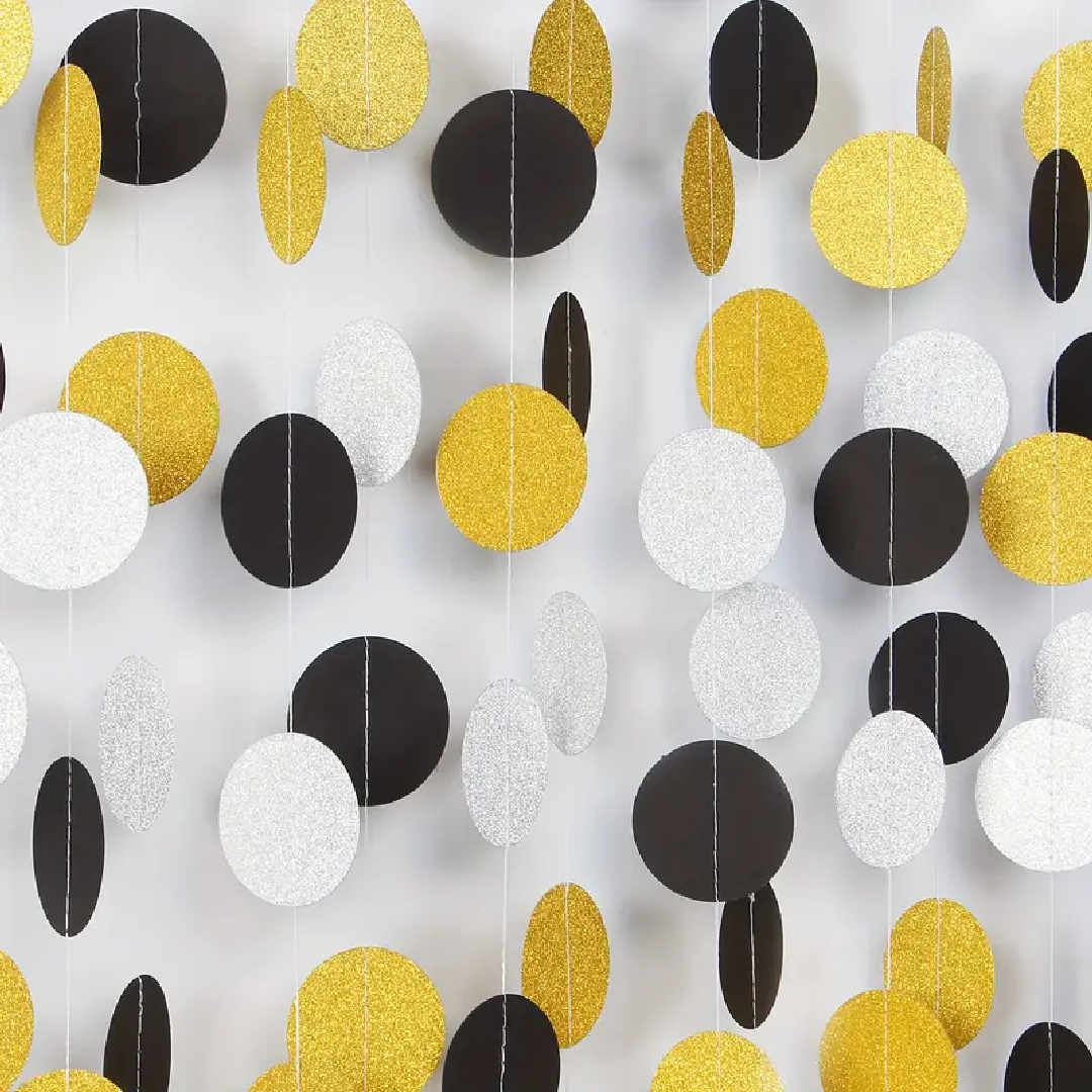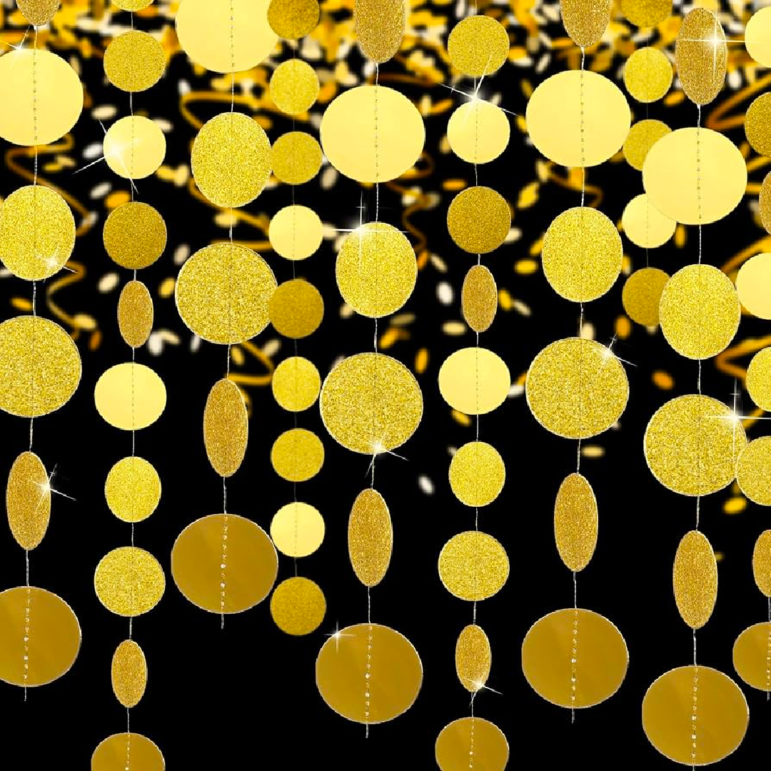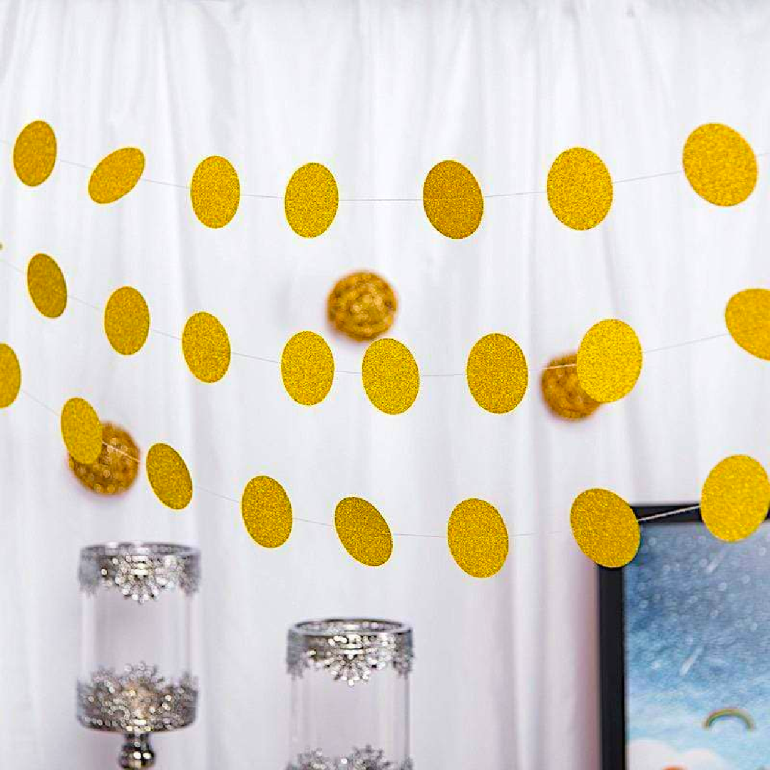Wanna Party Premium Golden Round Glitter Paper Garland Hanging for Wedding Birthday Anniversary Party Decoration / Golden Dangler Hanging / Golden Garland / Golden String Decoration-1 PC