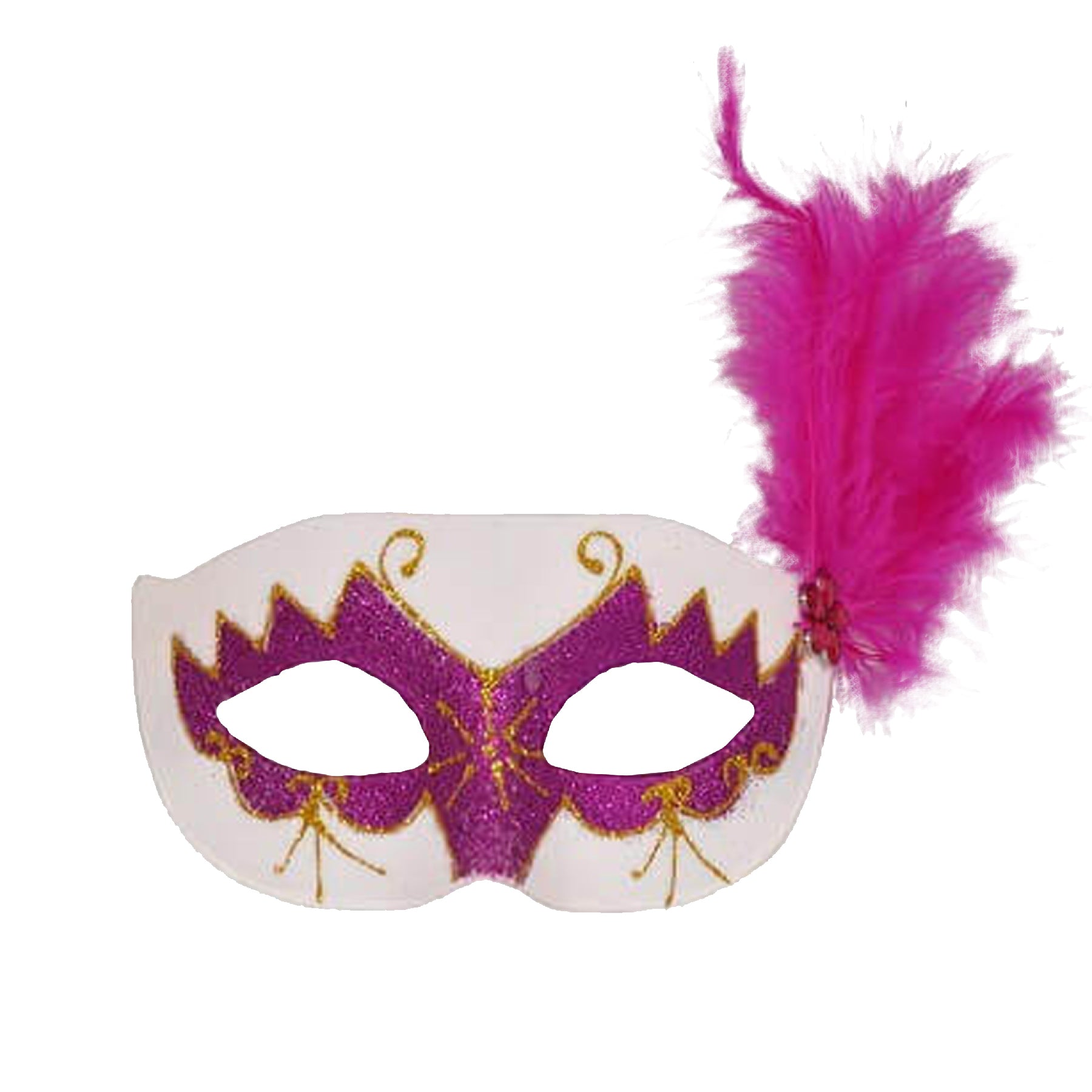 Design: This elegant glittery eye mask features a striking combination of white and pink shades, enhanced by sparkling pink glitter accents and delicate golden detailing. The symmetrical shape fits comfortably over the eyes, making it a perfect accessory for masquerade parties and festive celebrations.