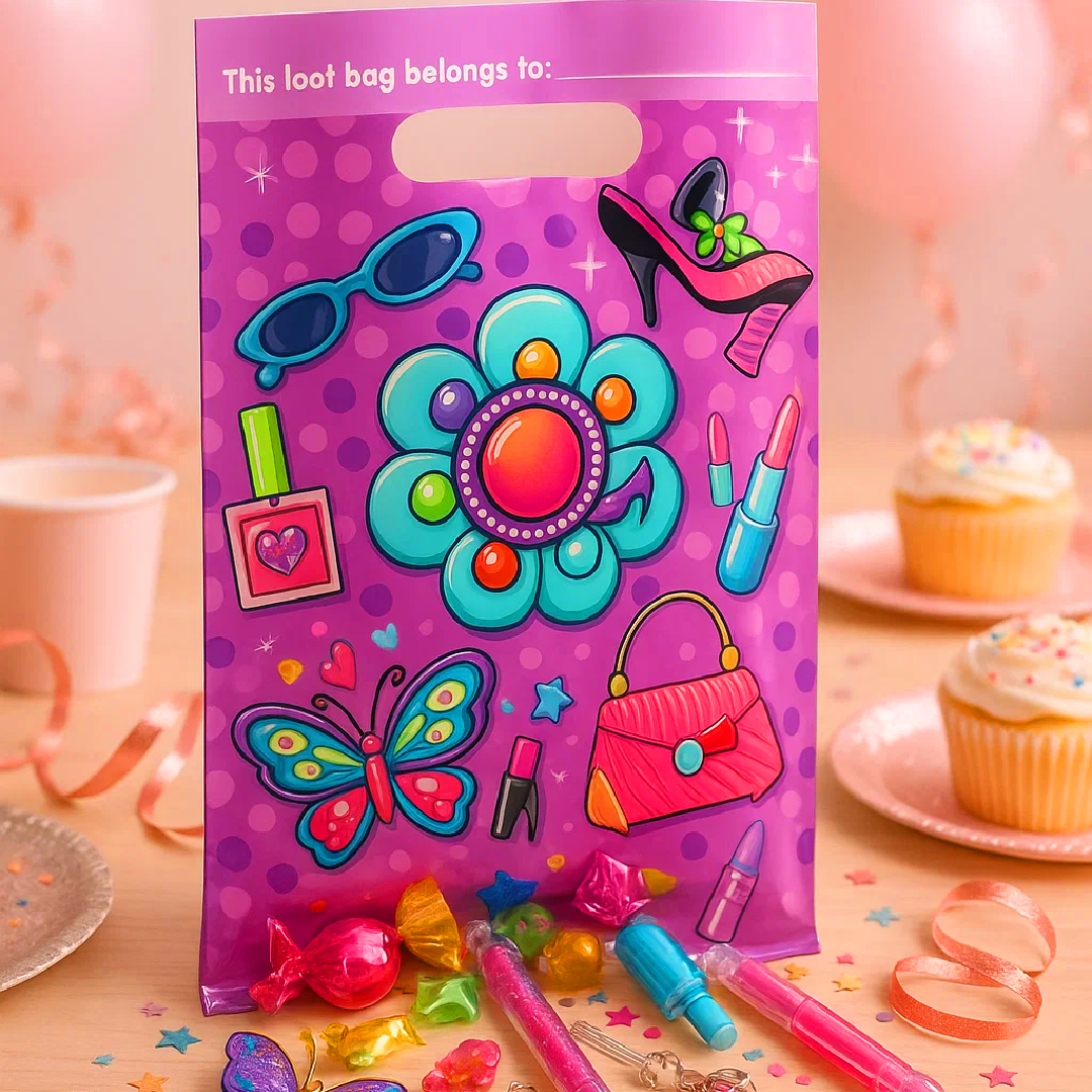 Occasions: Perfect for girls’ birthdays, dress-up parties, or glam-themed events, these loot bags elevate party fun. Their cheerful design complements a wide range of party décor, making every child feel special when receiving their party takeaway.