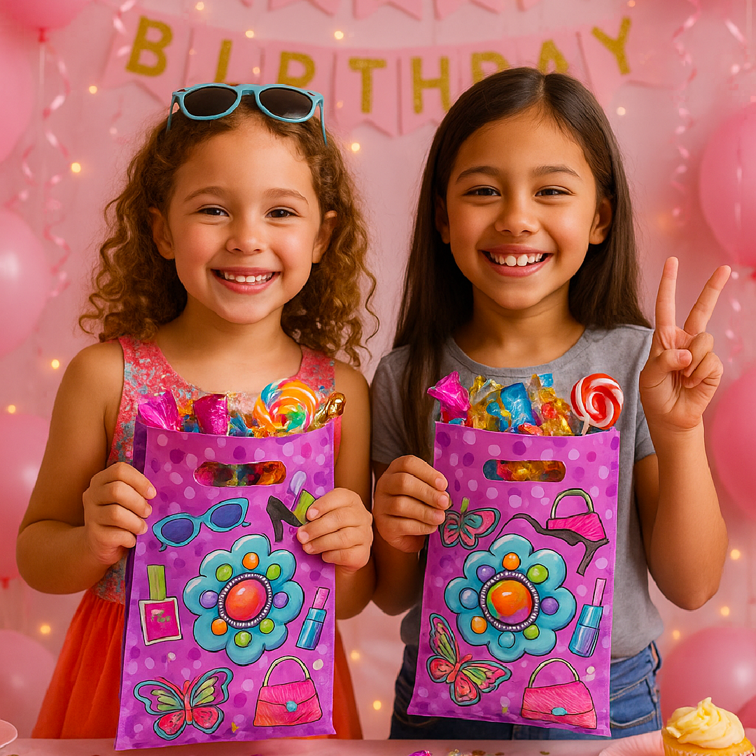 Reusable & Convenient: These glitzy girl loot bags can be reused for crafts or storing small items post-party. The flat-fold design allows easy storage, while the vivid colors and prints remain intact even after multiple uses, offering great value.