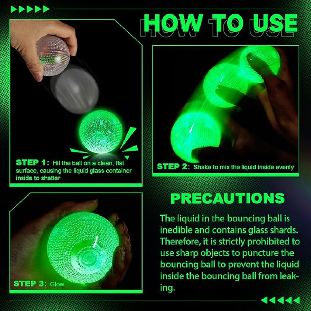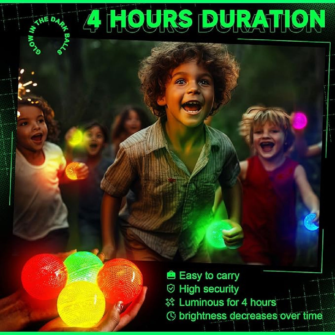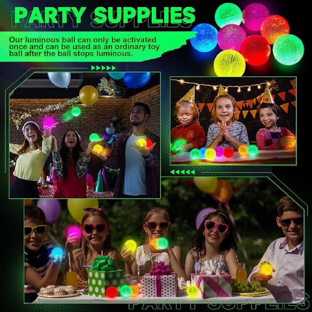 Light up the fun with our Glow In The Dark Balls – bouncy balls that shine brilliantly in the dark! Measuring 2.36 inches each, these textured LED balls come in a variety of bold neon colors. Perfect for kids' parties, night games, or sensory play, they offer endless glowing entertainment for both indoor and outdoor fun.