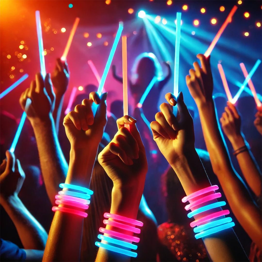 Vibrant Neon Glow: Illuminate your next neon party or concert with these dazzling GID bracelet sticks, creating an electrifying atmosphere.