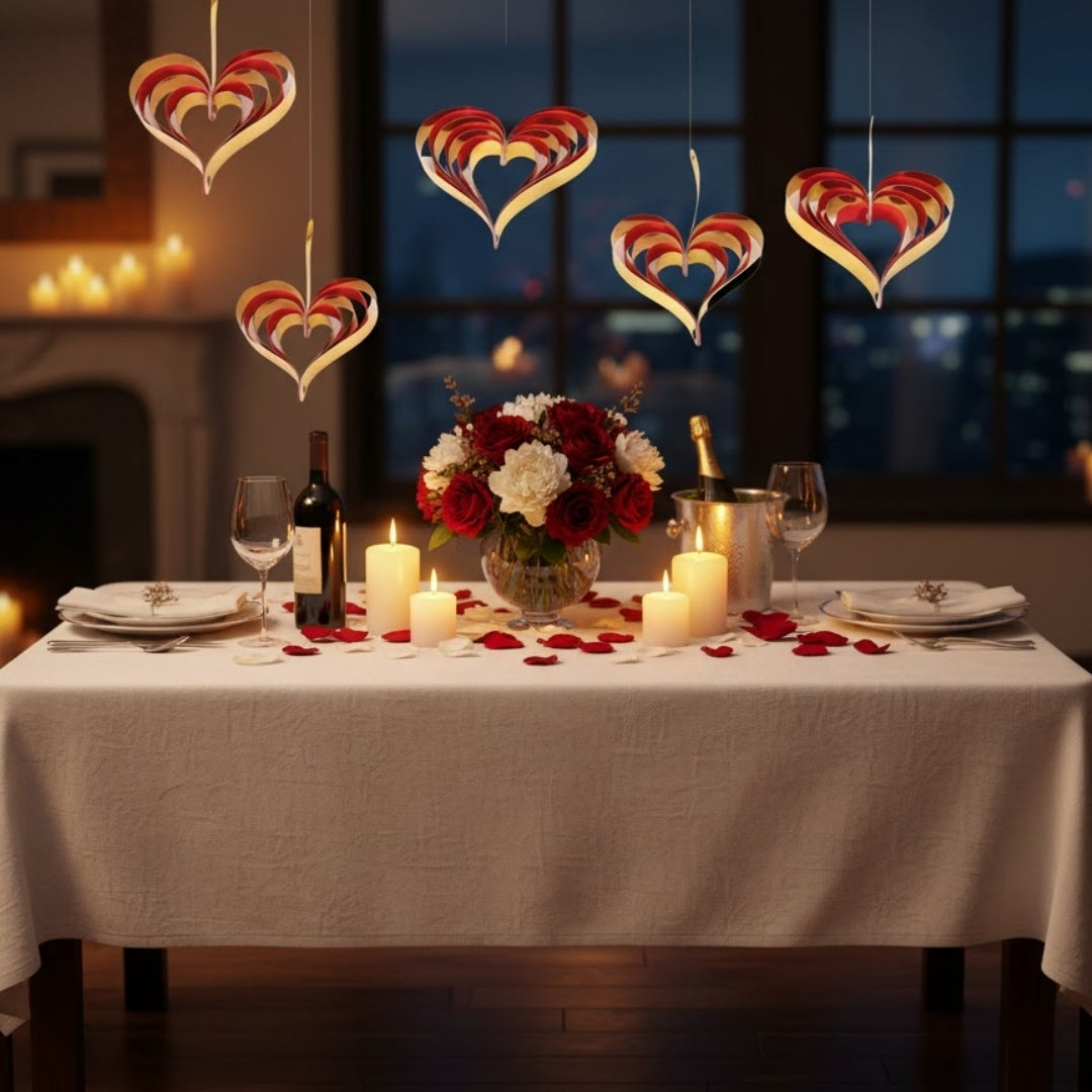 3D Layered Design for Maximum Impact: Each heart decoration is crafted in a multi-layered 3D style that gently moves with the air, creating dynamic visual interest. The reflective gold surface catches light beautifully, making them a perfect backdrop for photos and videos.