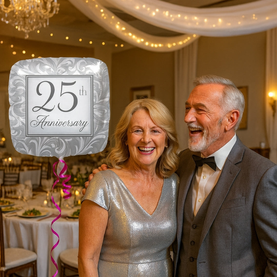 Versatile Decoration Piece: Perfect for indoor and outdoor celebrations, this 25th Anniversary balloon can be used for home parties, banquet halls, garden setups, or even surprise decorations. It pairs beautifully with silver, white, or metallic-themed décor.