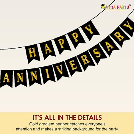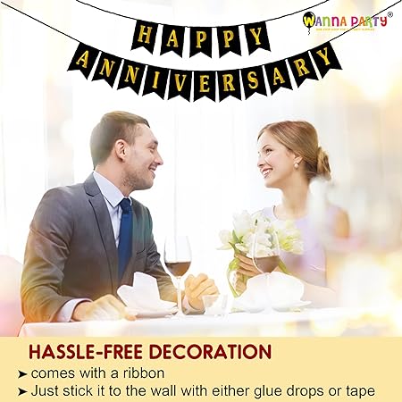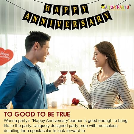 COMPLETE ANNIVERSARY DECORATION SET: Celebrate love in style with our all-in-one Happy Anniversary paper banner Combo Pack. This set includes a High-quality “Happy Anniversary” paper banner and 12 vibrant metallic balloons to create the perfect romantic ambiance. Whether it’s your 1st or 25th anniversary, this kit adds a festive touch to your home or party venue. Easy to hang and instantly transforms any space into a celebration zone.