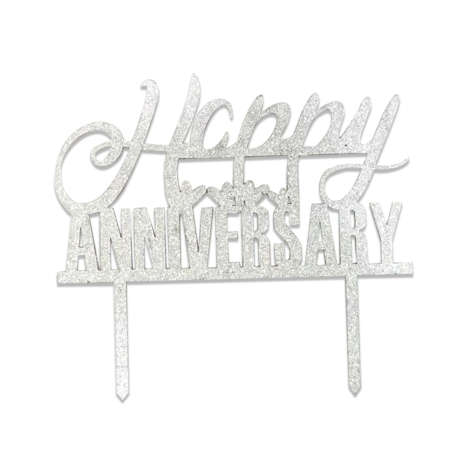 Happy Anniversary Silver Glitter Cake Topper - 1PC