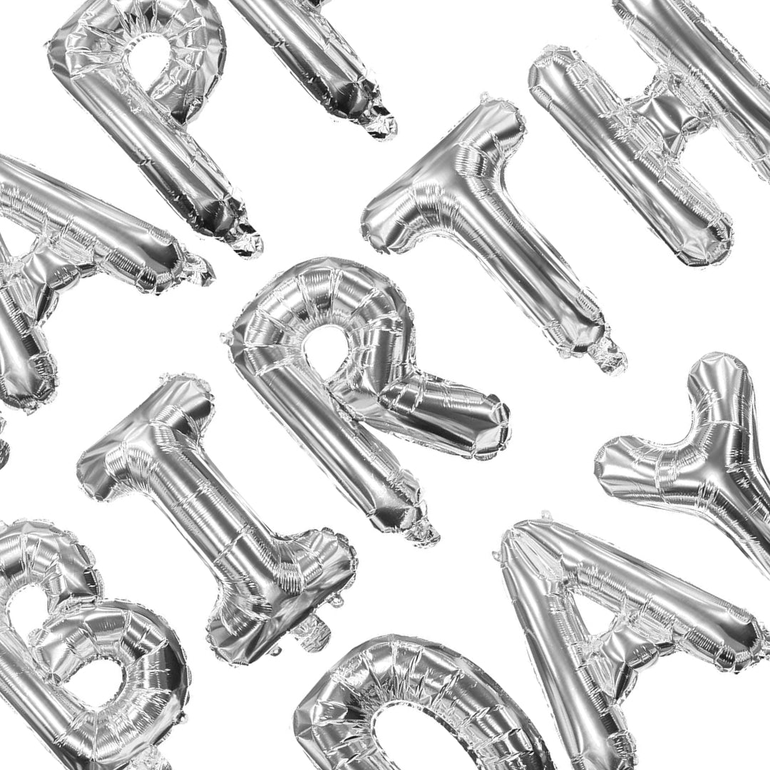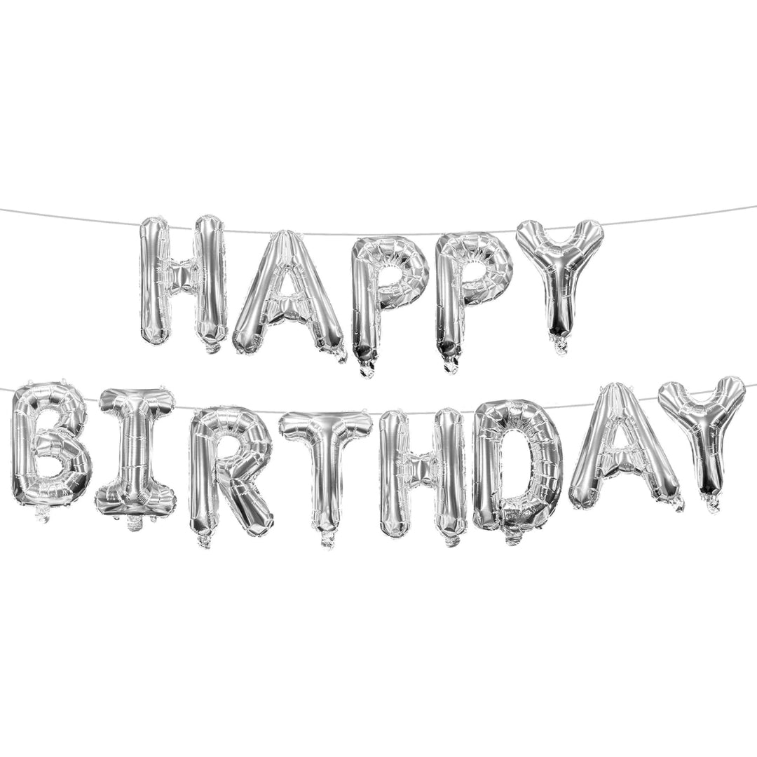 Happy Birthday Silver Letter Balloon Banner - Air Filled - 1 Pack