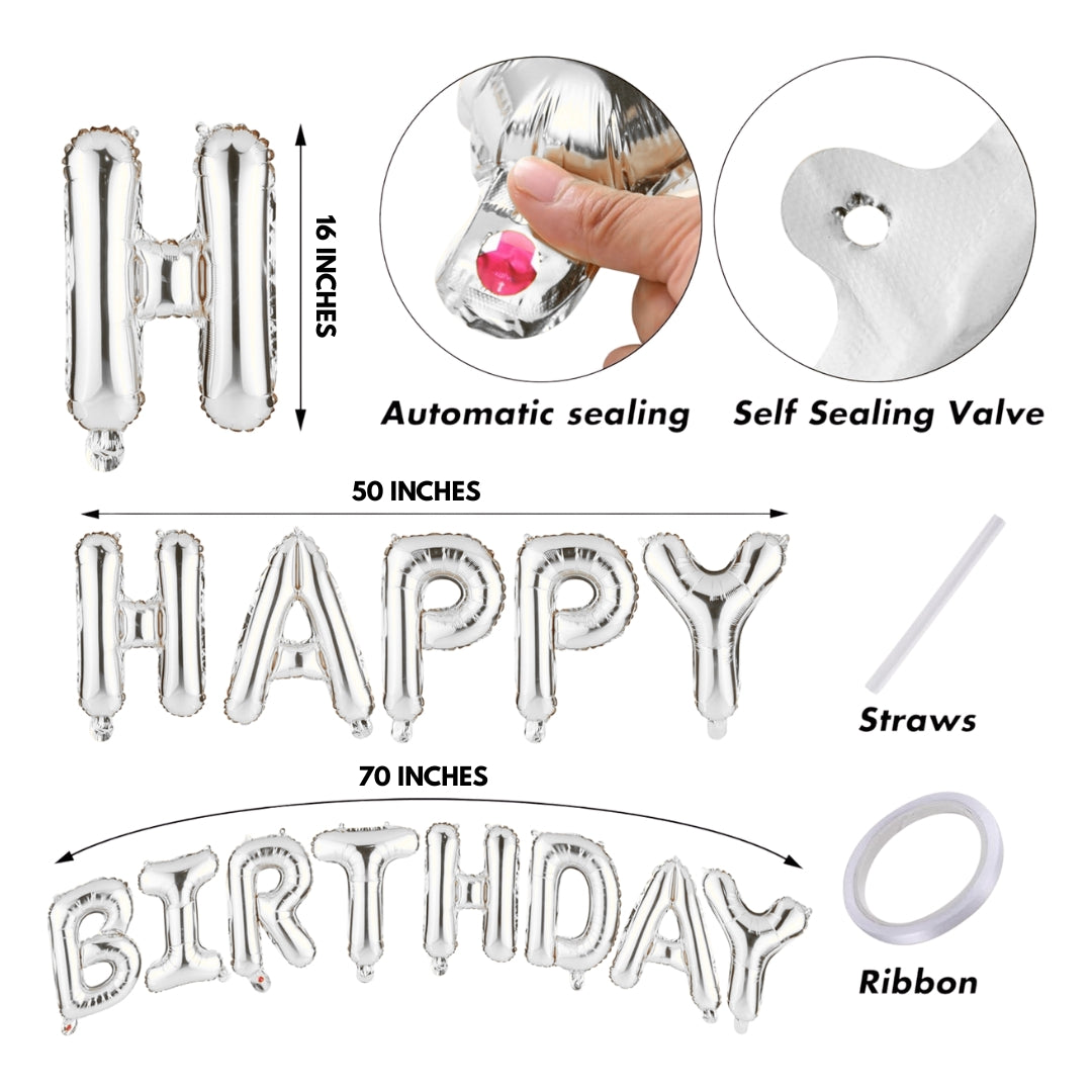 🎈 Elegant Silver Foil Design: This Happy Birthday balloon banner features a stunning metallic silver finish that catches the light beautifully—adding a touch of elegance and shine to any birthday celebration, whether casual or classy.