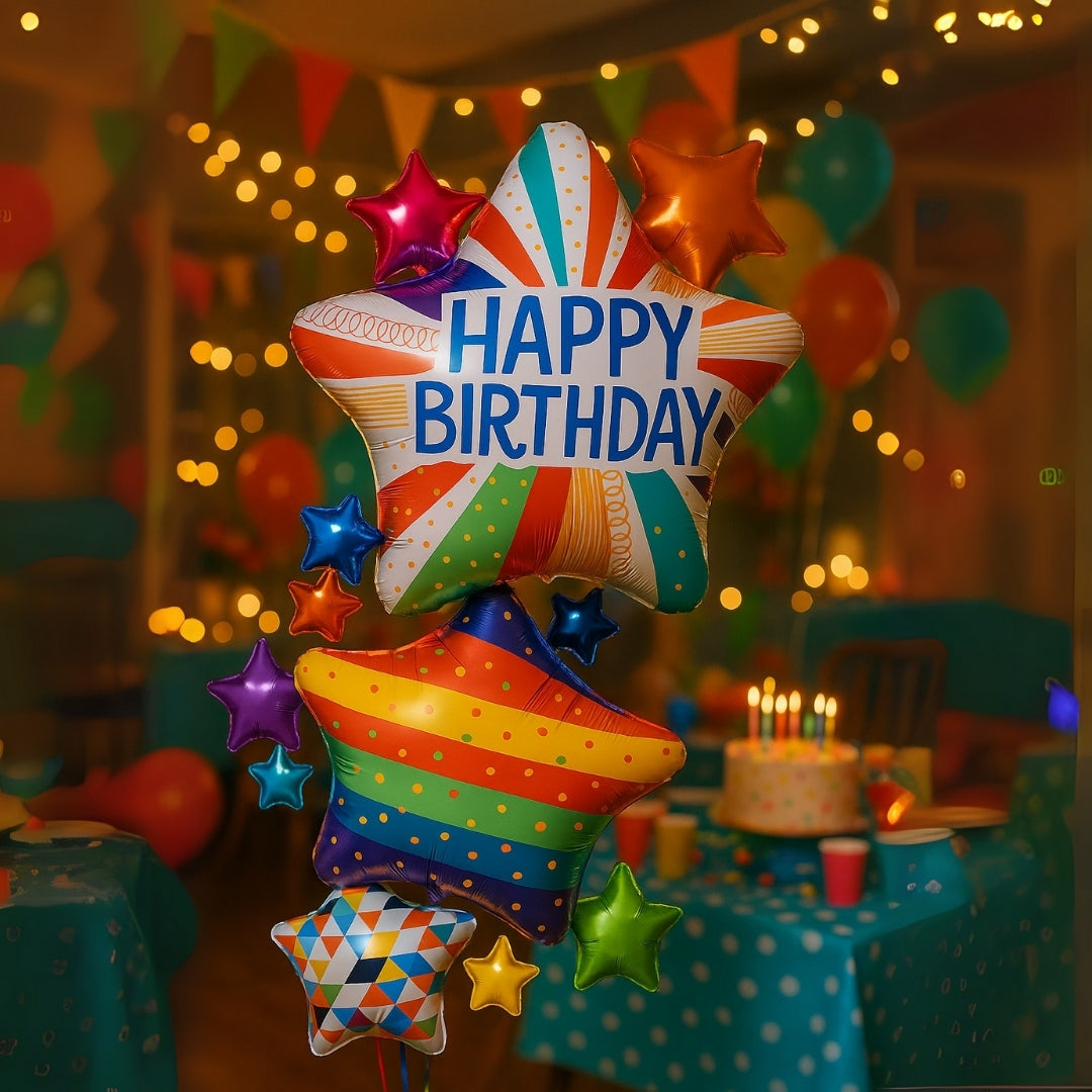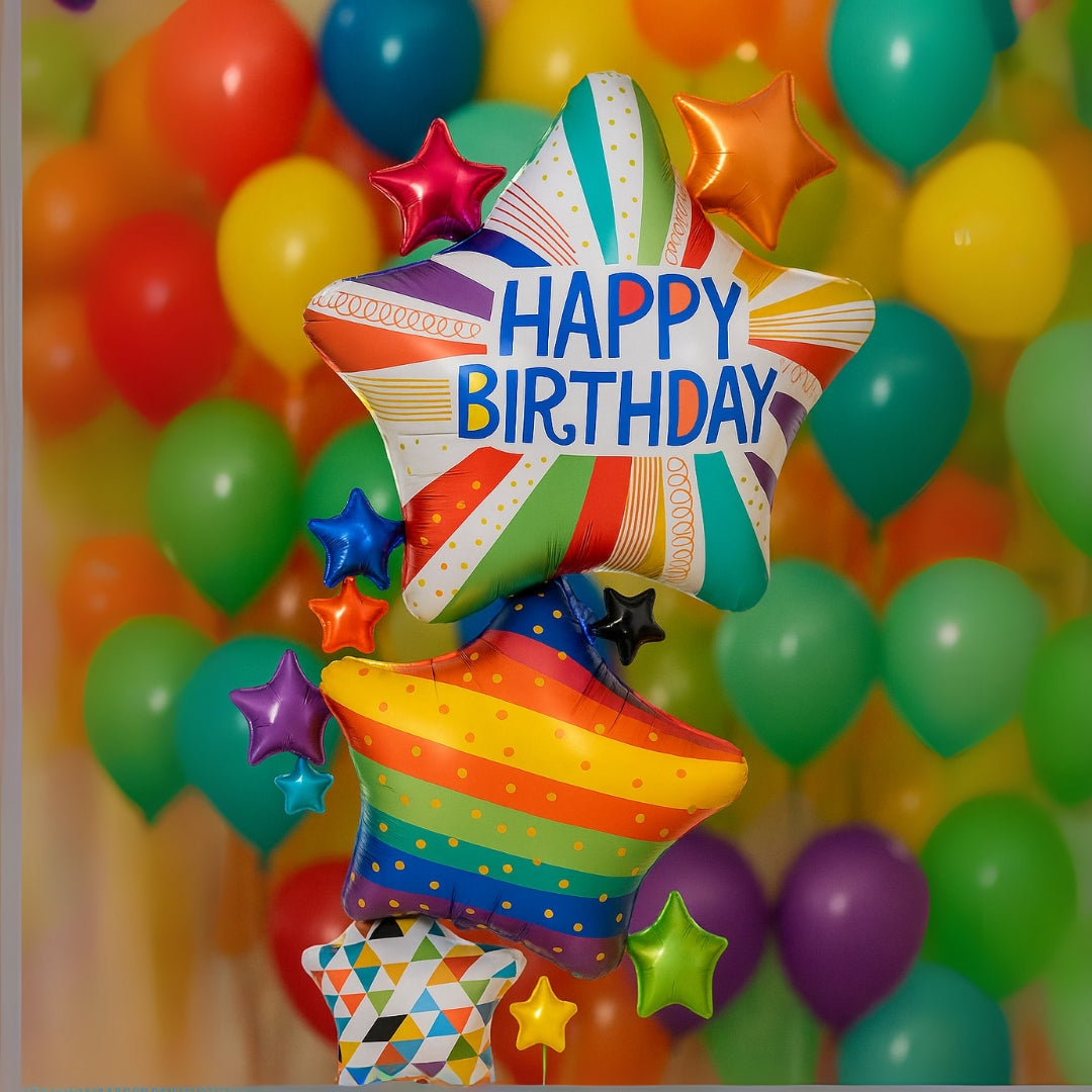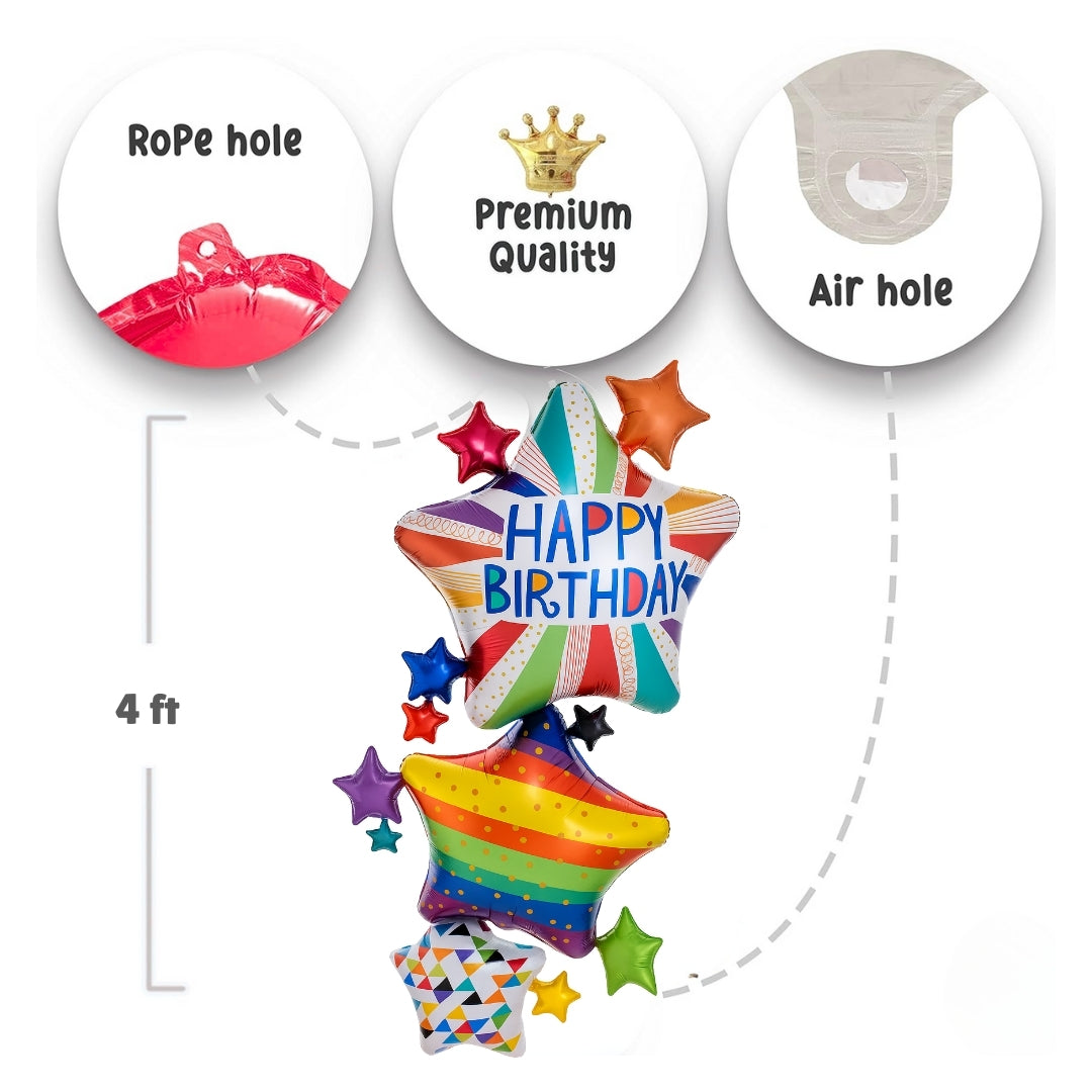 Eye-Catching Star Design: Shiny multi-colored star-shaped foil balloon with a bold "HAPPY BIRTHDAY" print to instantly brighten up your celebration.