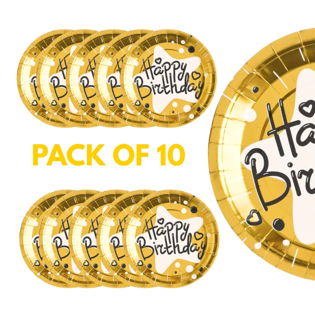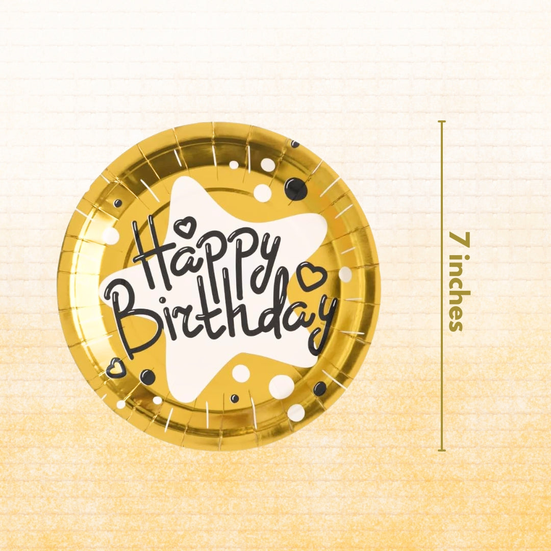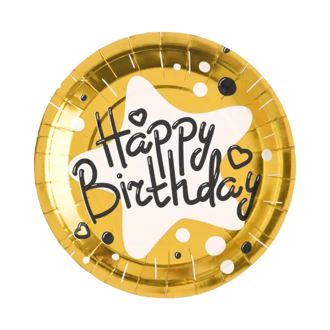 Elegant Gold Foil Design: Each plate features a stylish “Happy Birthday” message in shimmering gold foil, adding a touch of glamour and sophistication to your party table setup.
